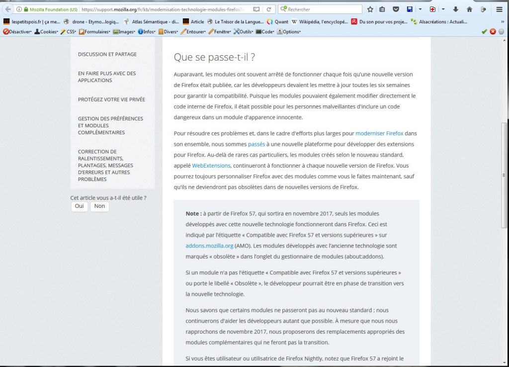 On croise donc bien les doigts pour que les gentils développeurs trouvent du temps pour nous fabriquer de nouvelles extensions (dites Web Extensions) compatibles avec Firefox 57…