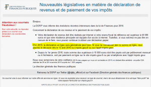 Voilà ce que dit la dernière newsletter de la Direction Générale des Finances Publiques: