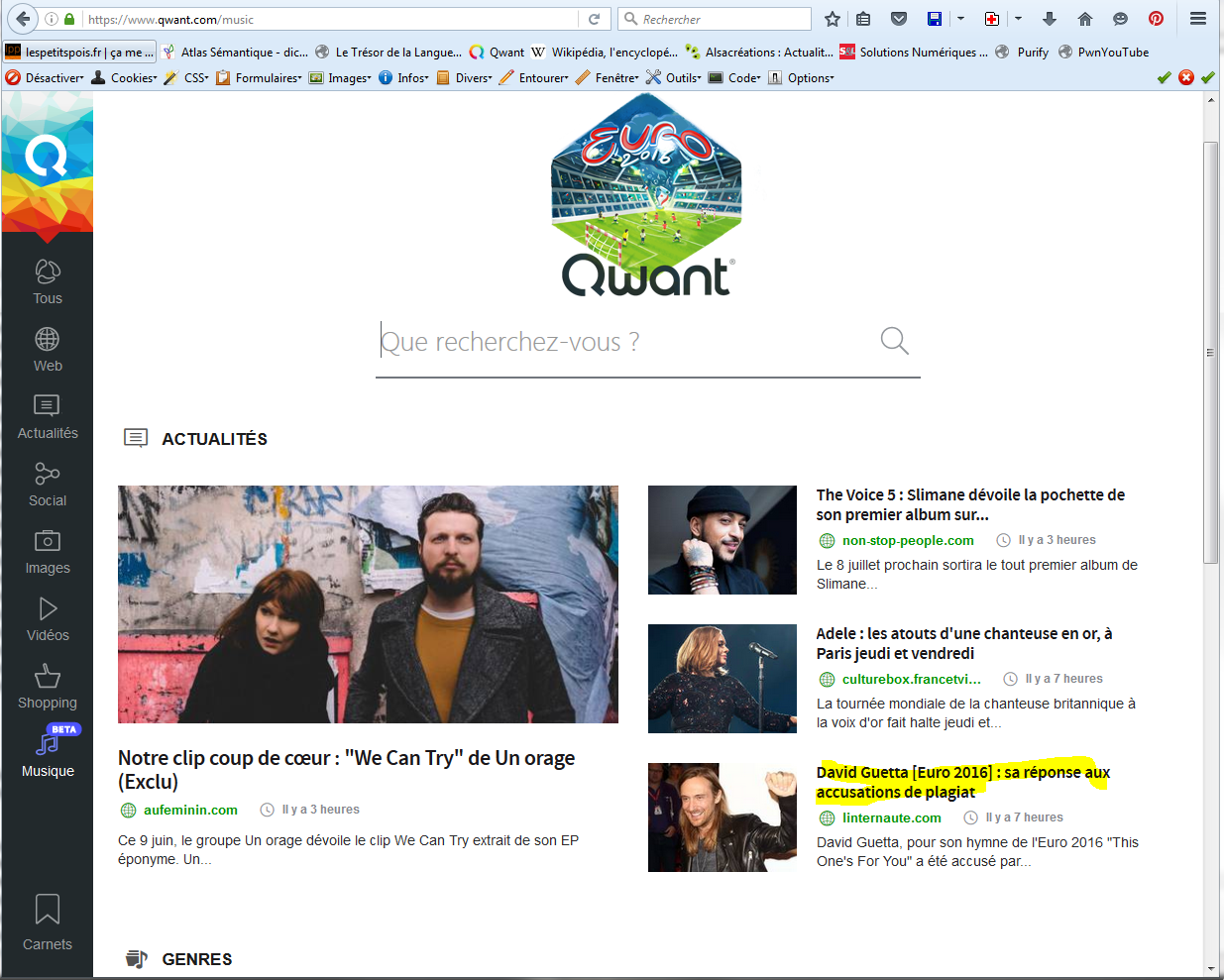 L’Euro par ci, l’Euro par là. C’est pas mon truc. Je n’avais donc pas prévu d’en parler. Et puis voilà que sur “Qwant music” (nouvelle rubrique de Qwant soit dit en passant) je lis: