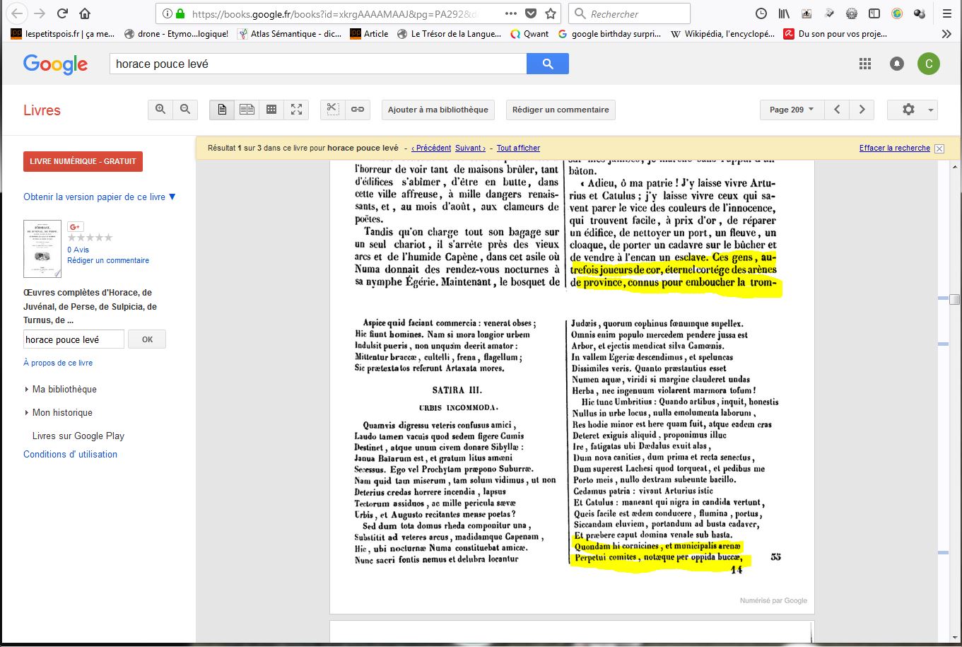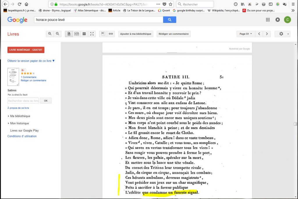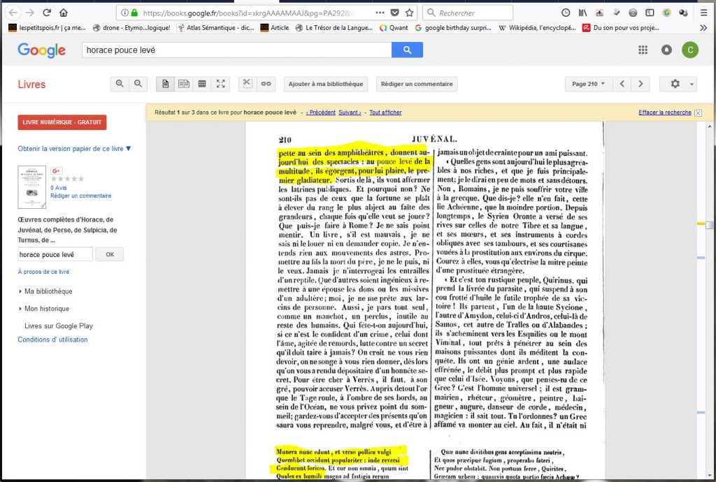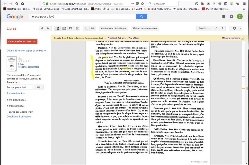 Je veux dire verso pollice ça veut littéralement dire “pouce tourné”, et nulle part j’ai pu lire chez les auteurs latin une indication de direction (tourné vers où ?).