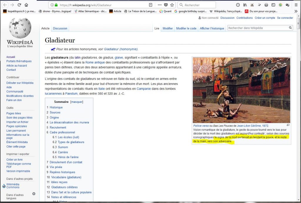 Et comme il semble que cette question soit une réelle question de débat, je vous renvois au Wikipédia qui en parle aussi dans son article sur les gladiateur sous le titre “Idées reçues“…: