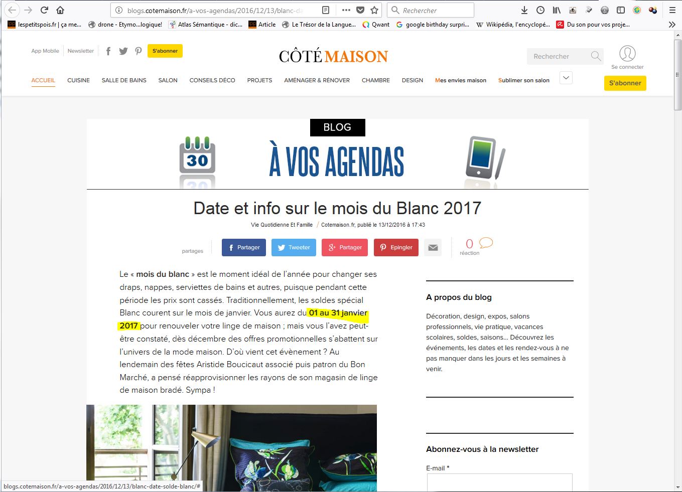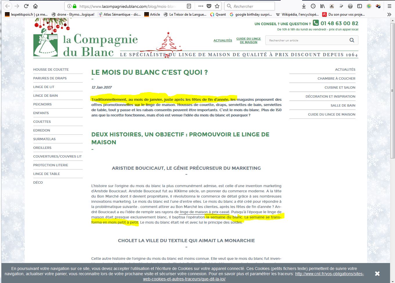 Petit Rappel historique: originellement la semaine du blanc c’est après les fêtes, la 1ère semaine de Janvier…