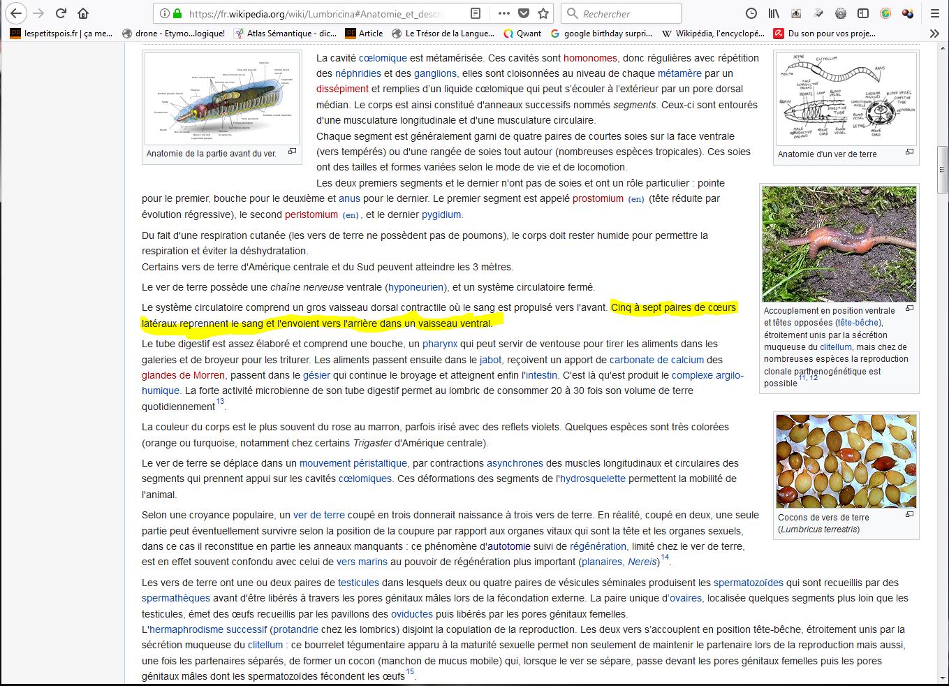 “Le ver de terre a en réalité cinq paires d’organes qui pompent son sang”.
