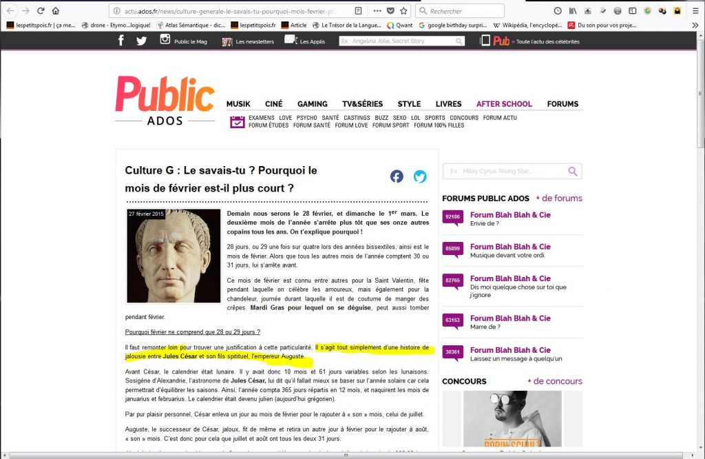Et les premières réponses auraient pu satisfaire un internaute Lambda: réponse facile à mémoriser parce que plutôt rigolote; une histoire de jalousie entre Auguste et César… je vous laisse découvrir par vous même:
