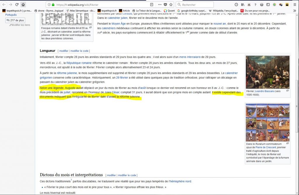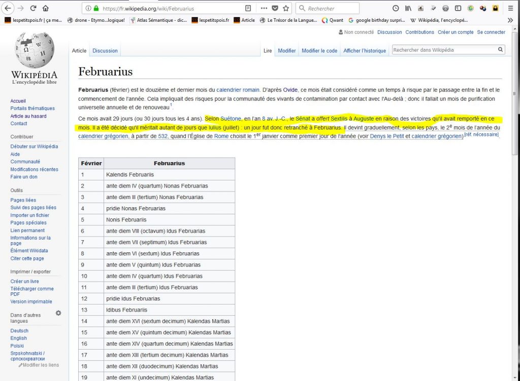Macrobe, Blondel et le Wikipédia vont dans le même sens. Point d’Auguste dans l’histoire, c’était une vaste clownerie ! Si Février n’a que 28 jours c’est à cause “des Dieux des Enfers”!