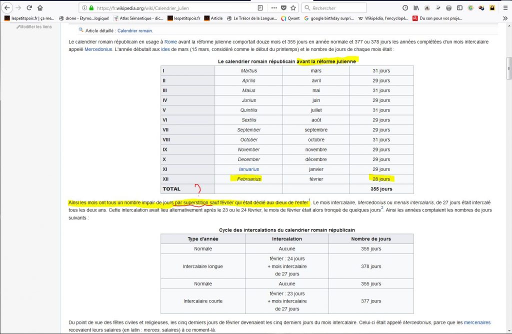 Et l’on y voit que dans le calendrier Romain le mois de février avait effectivement déjà 28 jours
