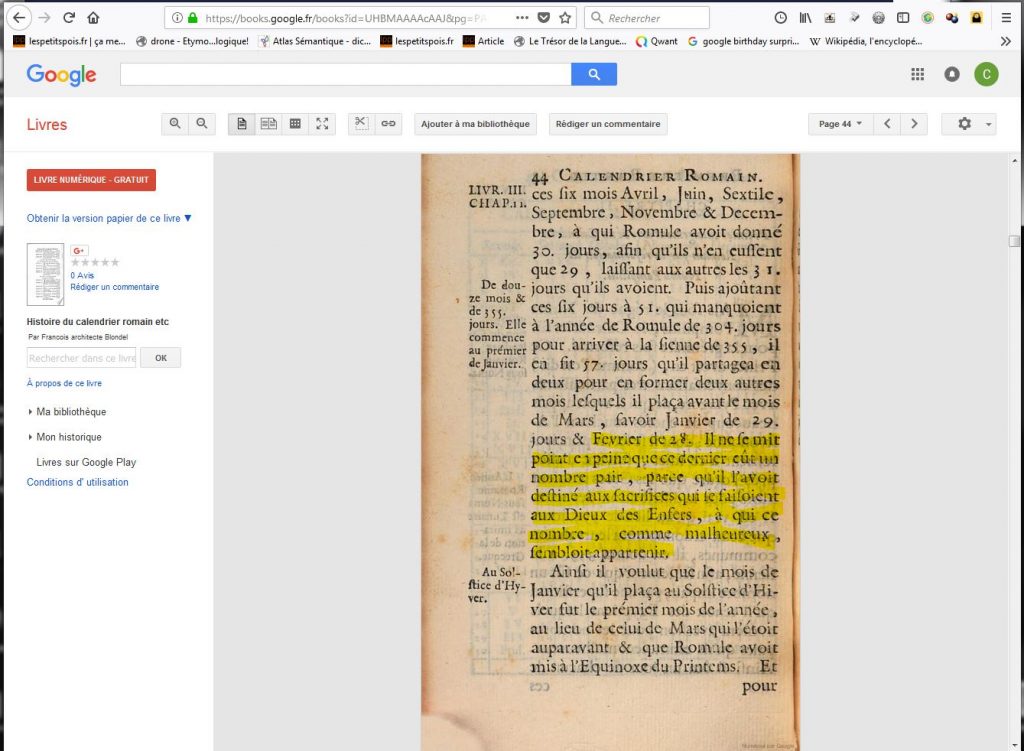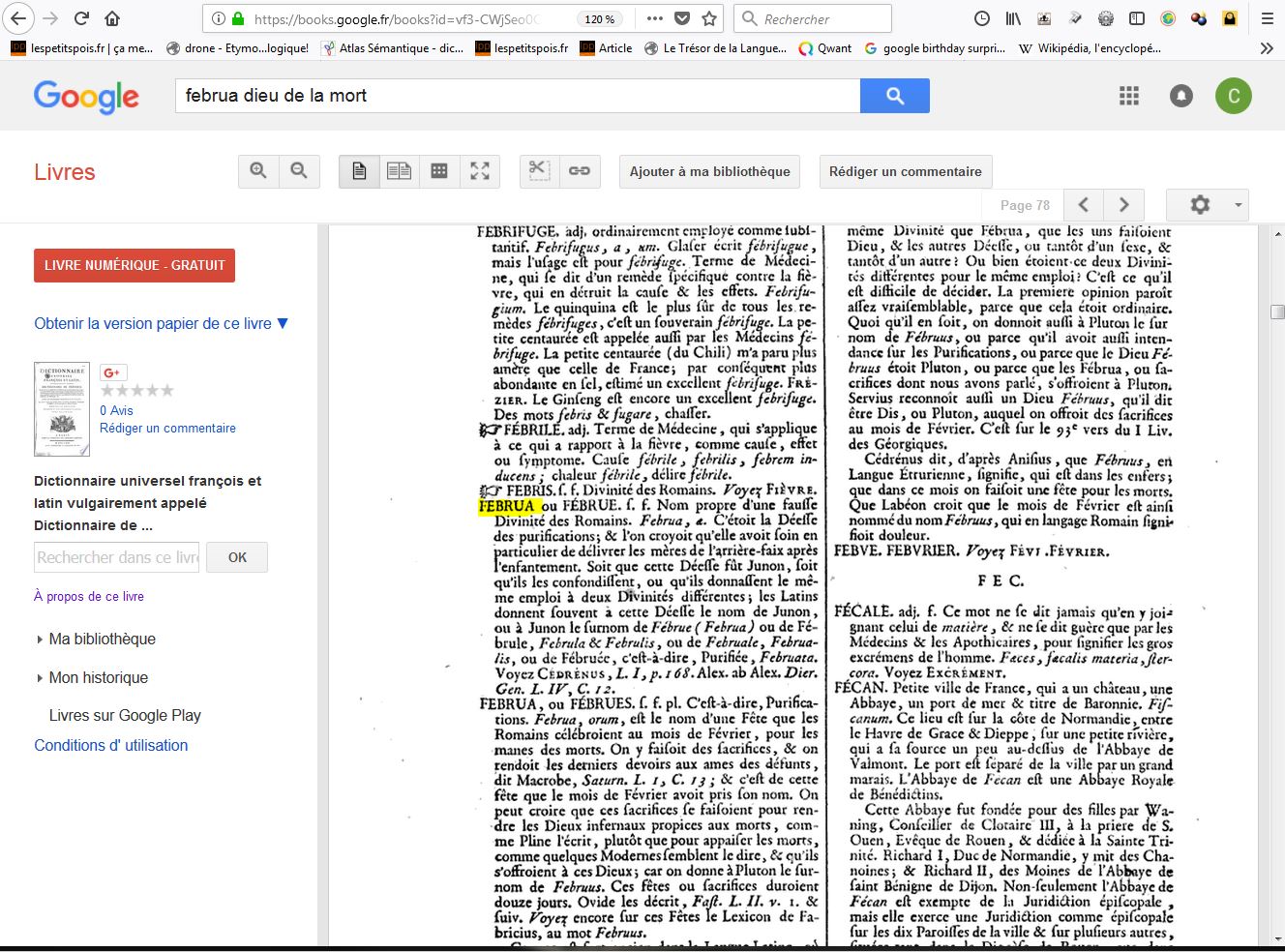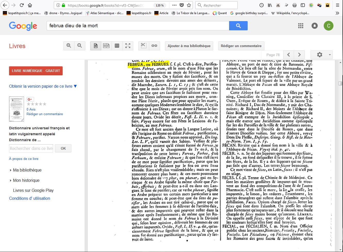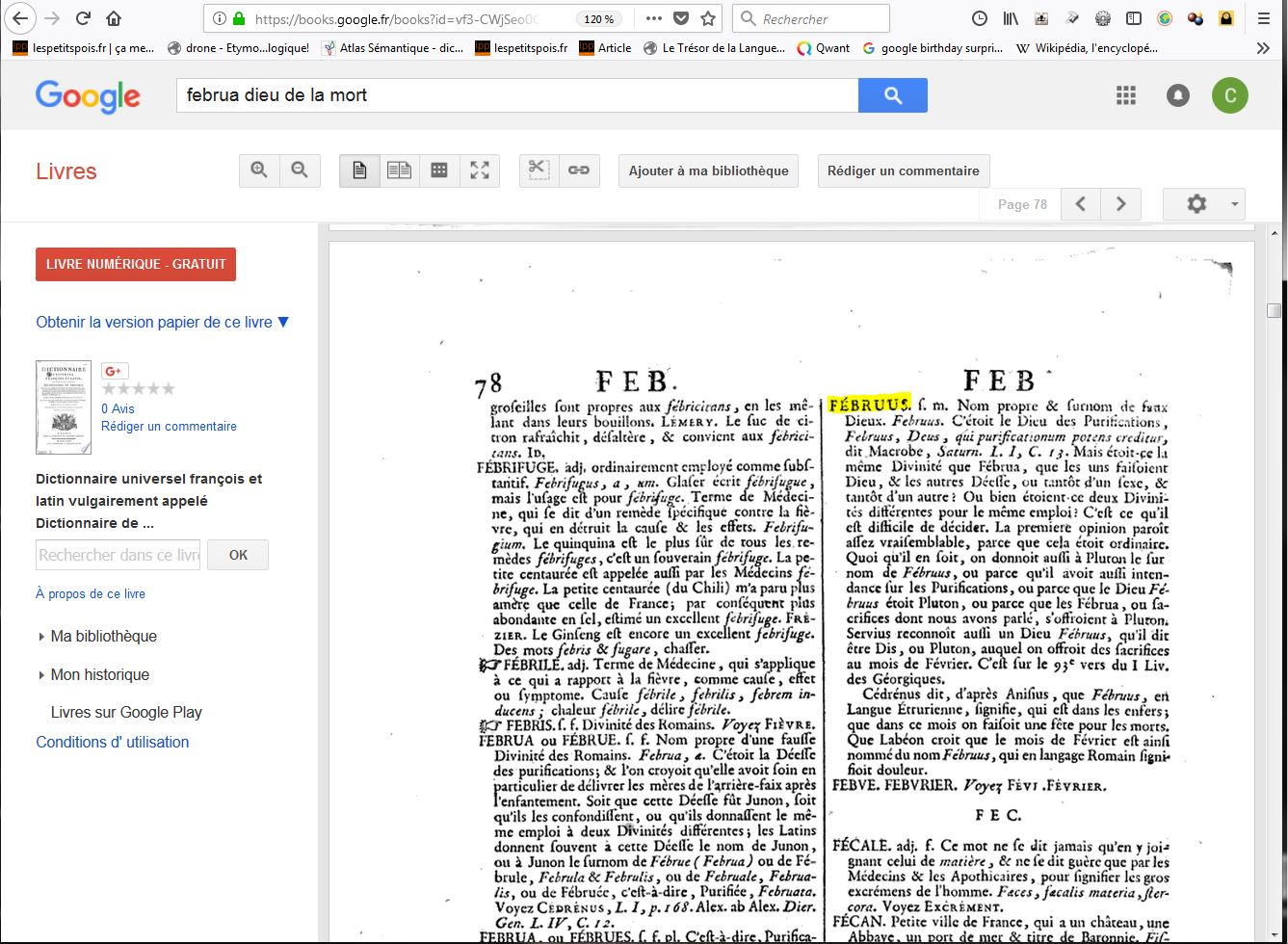 Et je vous renvois ici à la lecture du Dictionnaire universel françois et latin vulgairement appelé Dictionnaire de Trévoux de 1771, à ses articles FEBRUA et suivants: