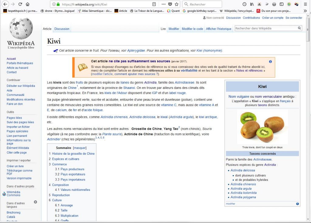 “Les kiwis sont des fruits de plusieurs espèces de lianes du genre Actinidia, famille des Actinidiaceae.”