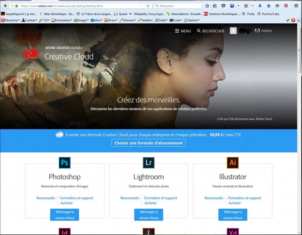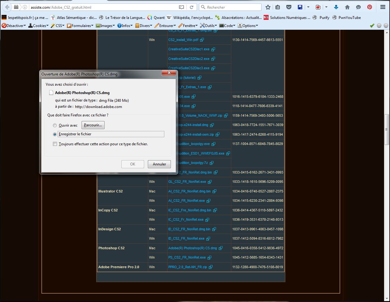 Il reste que l’on peut encore trouver sur le Net des pages listant les logiciels de la suite avec un lien de téléchargement (même vers adobe.com) qui fonctionne encore ainsi que les fameux n° de licence associés:
