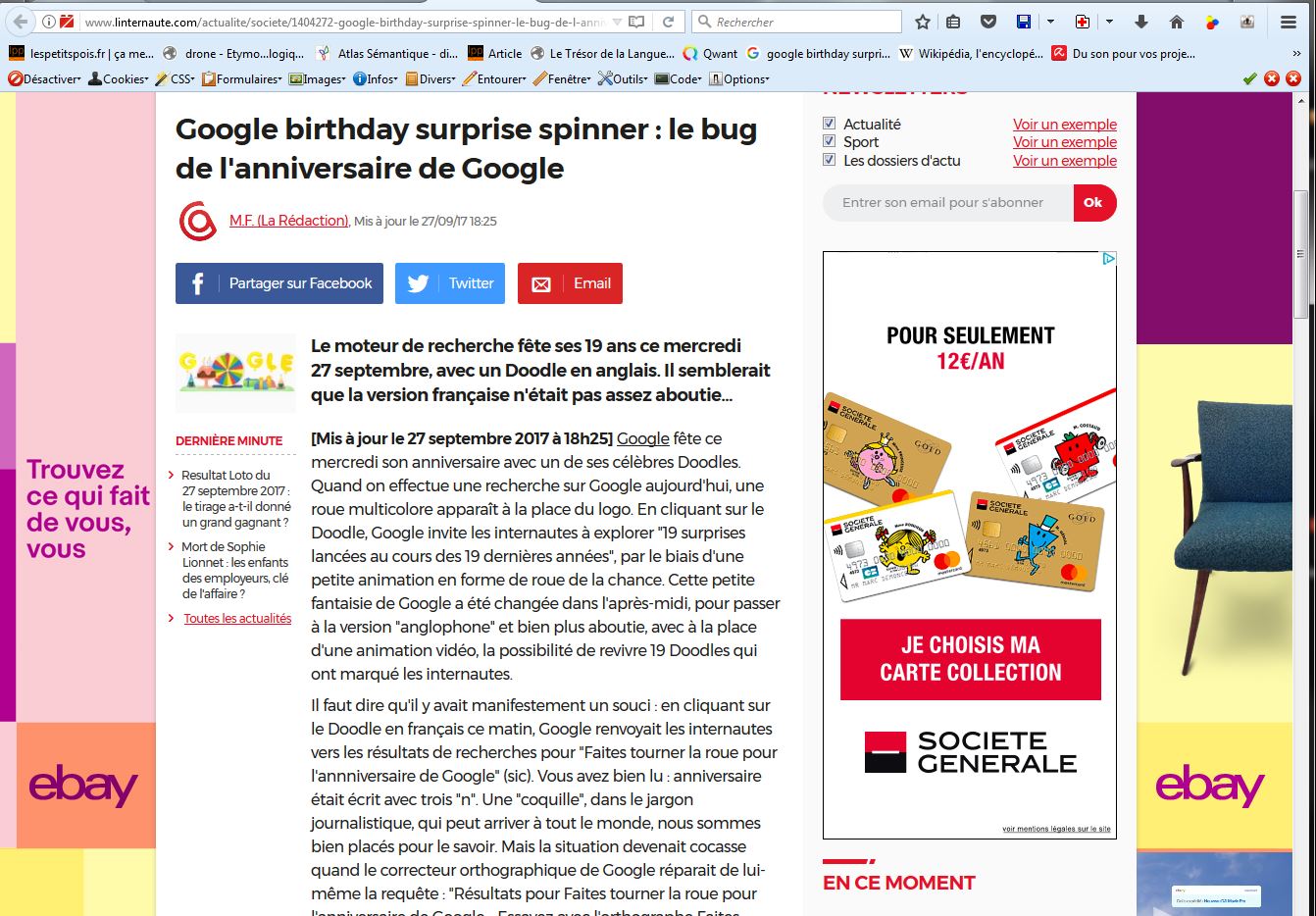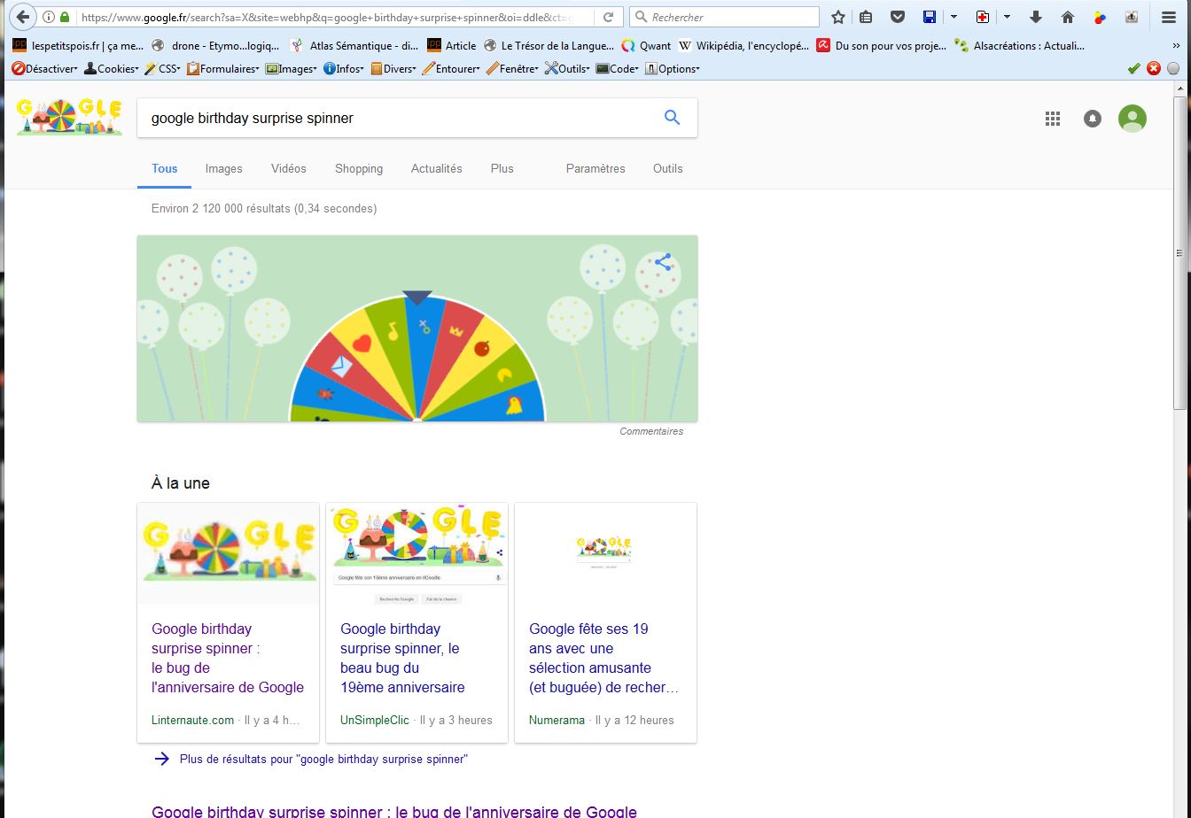 Ce soir *, comme beaucoup surement, j’ai fêté les 19 ans de Google en tournant la roue… plusieurs fois…