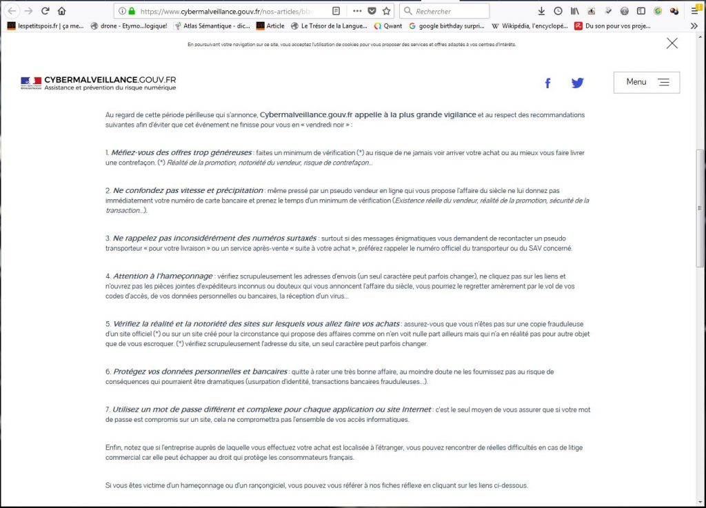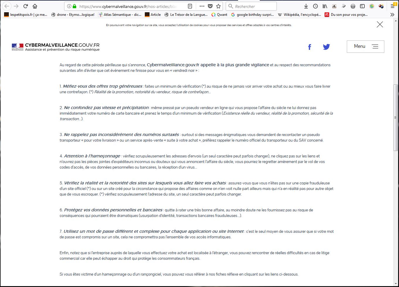 Pourtant, cette année, à propos de cette semaine de promotion, son site ne rappelle pas les règles aux commerçants. Non. Son site relaye l’article de cybermalveillance.gouv.fr sur les cyberarnaques :