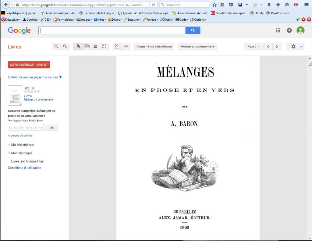 En effet, dans son ouvrage de 1860 intitulé “Œuvres complètes: Mélanges en prose et en vers, Volume 4Auguste Alexis Floréal Baron, enseignant et un homme de lettres belge d’origine française, fait un commentaire de la chanson plutôt terre à terre au cours duquel il ouvre le tiroir étymologique suivant – je me permets de recopier – :