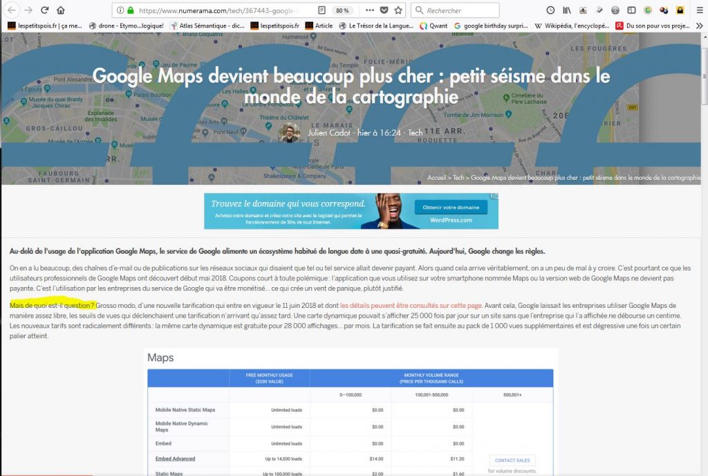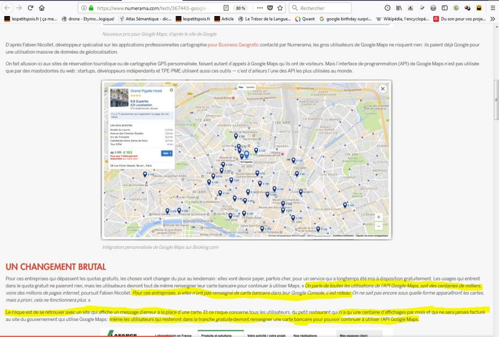 Mais le gros problème à mon sens, c’est quand même l’obligation que fait Google map de lui laisser son n° de carte bleue, même pour les utilisations gratuites :