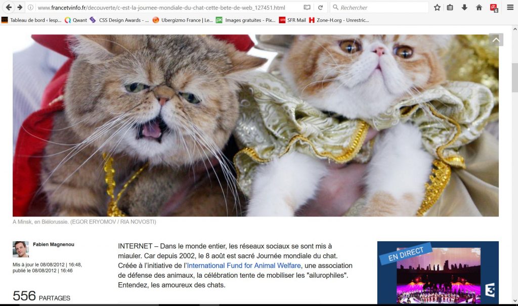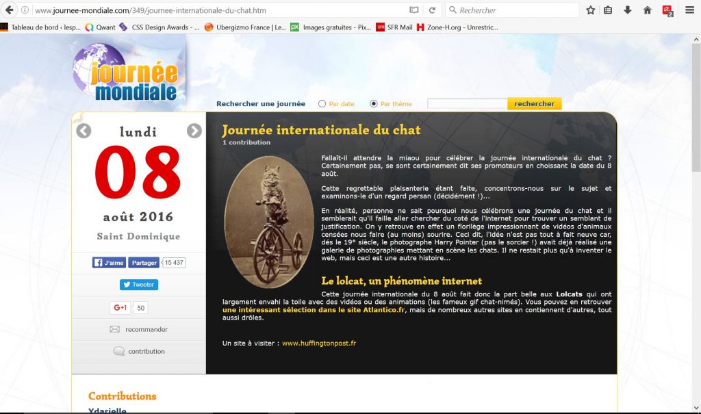 Enfin, même s’il leur arrivent certaines années de fêter les chats le 8 Août ils ne s’attribue jamais l’initiative. Ainsi en 2014: