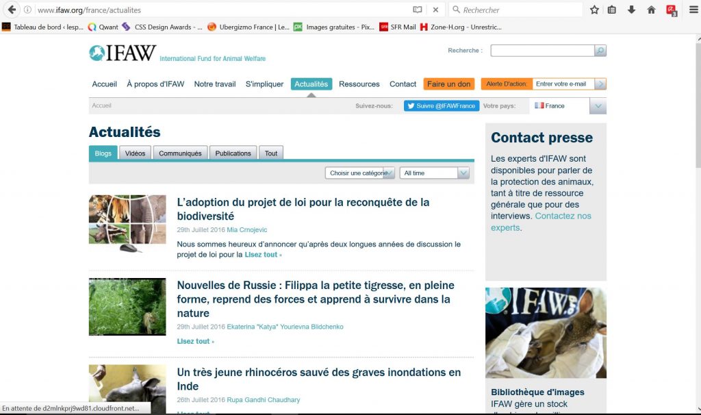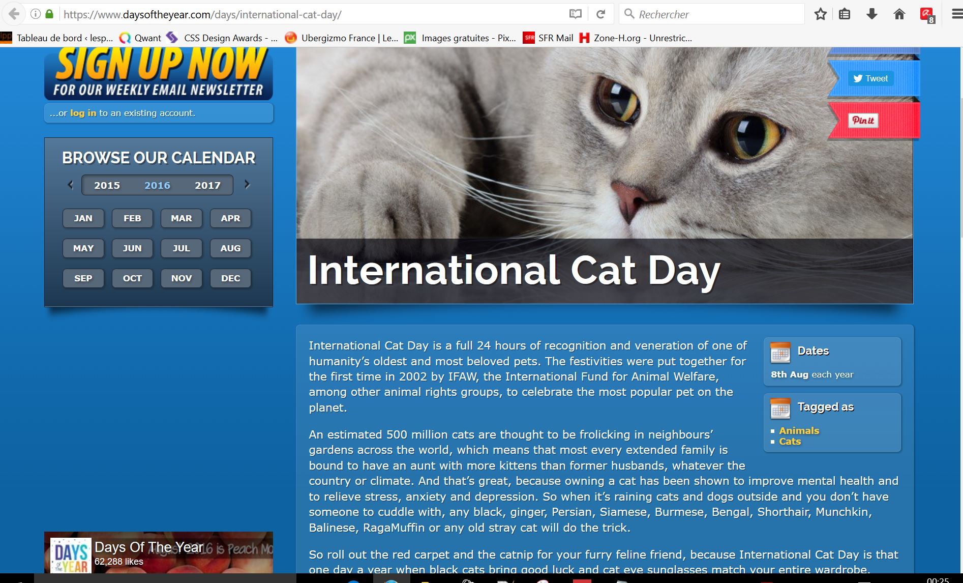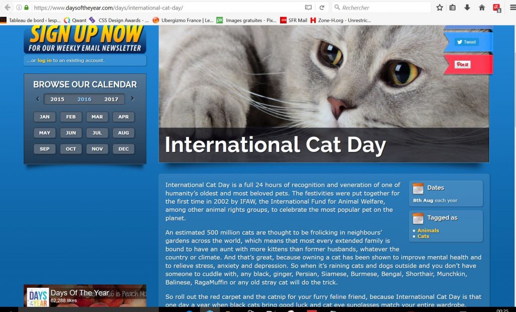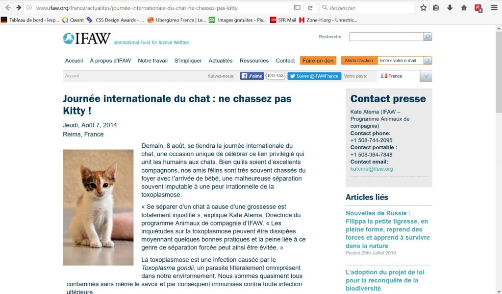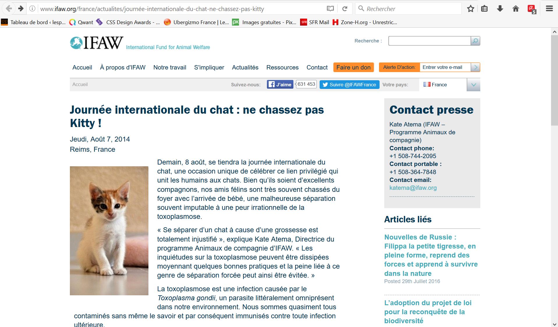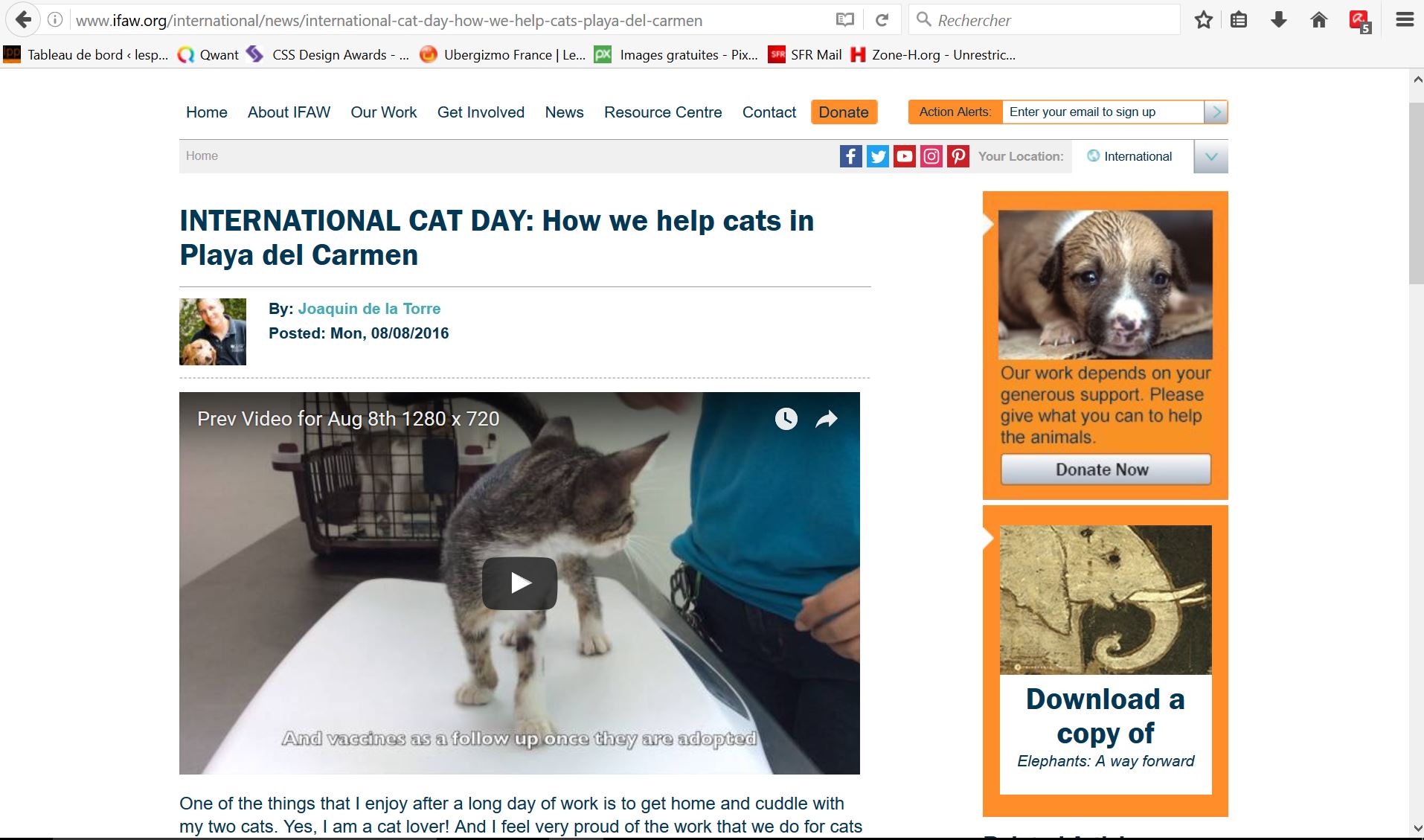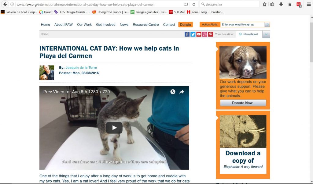 Mais difficile de vérifier cela. En effet si sur le site International de l’IFAW on a par contre une petite référence au cat day: