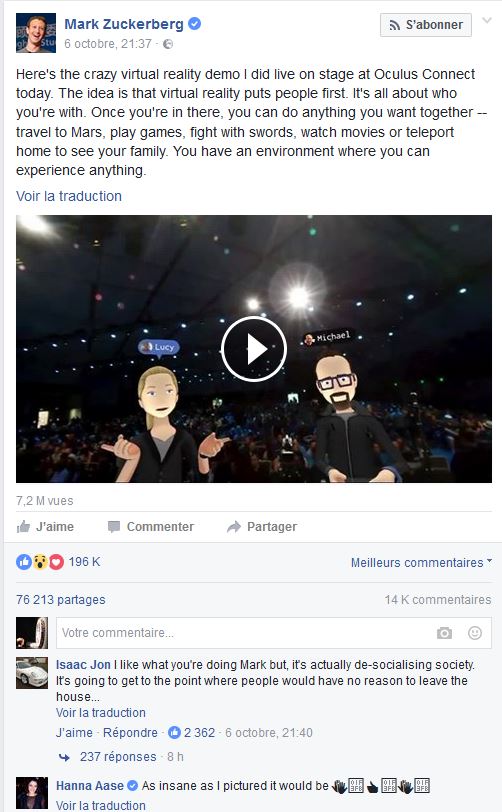 En 2016, il y a Mark Zucherberg. Et c’est Woaw ! La réalité virtuelle ! Mais alors c’est vraiment vrai !!?