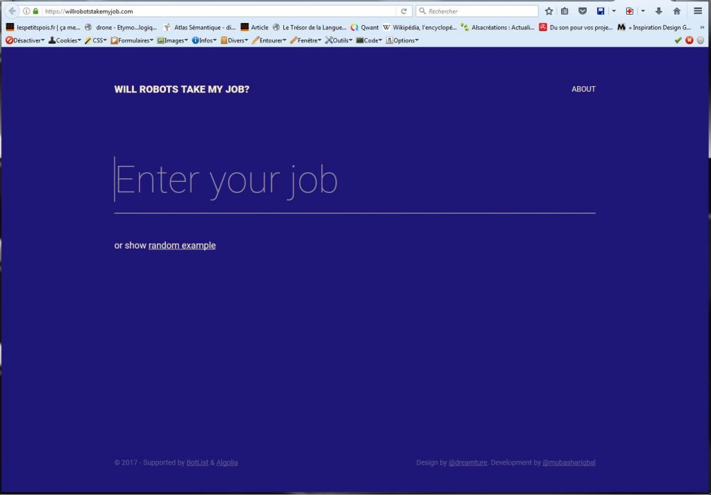 Loin de la blagounette de comptoir, ce petit site qui ne paye pas de mine est en réalité programmé sur la base d’une étude publiée en 2013 totalement sérieuse intitulée “The Future of employments: how susceptible are jobs to computerisation”.