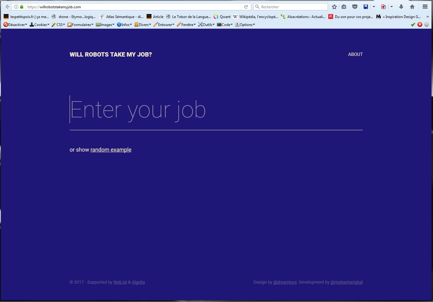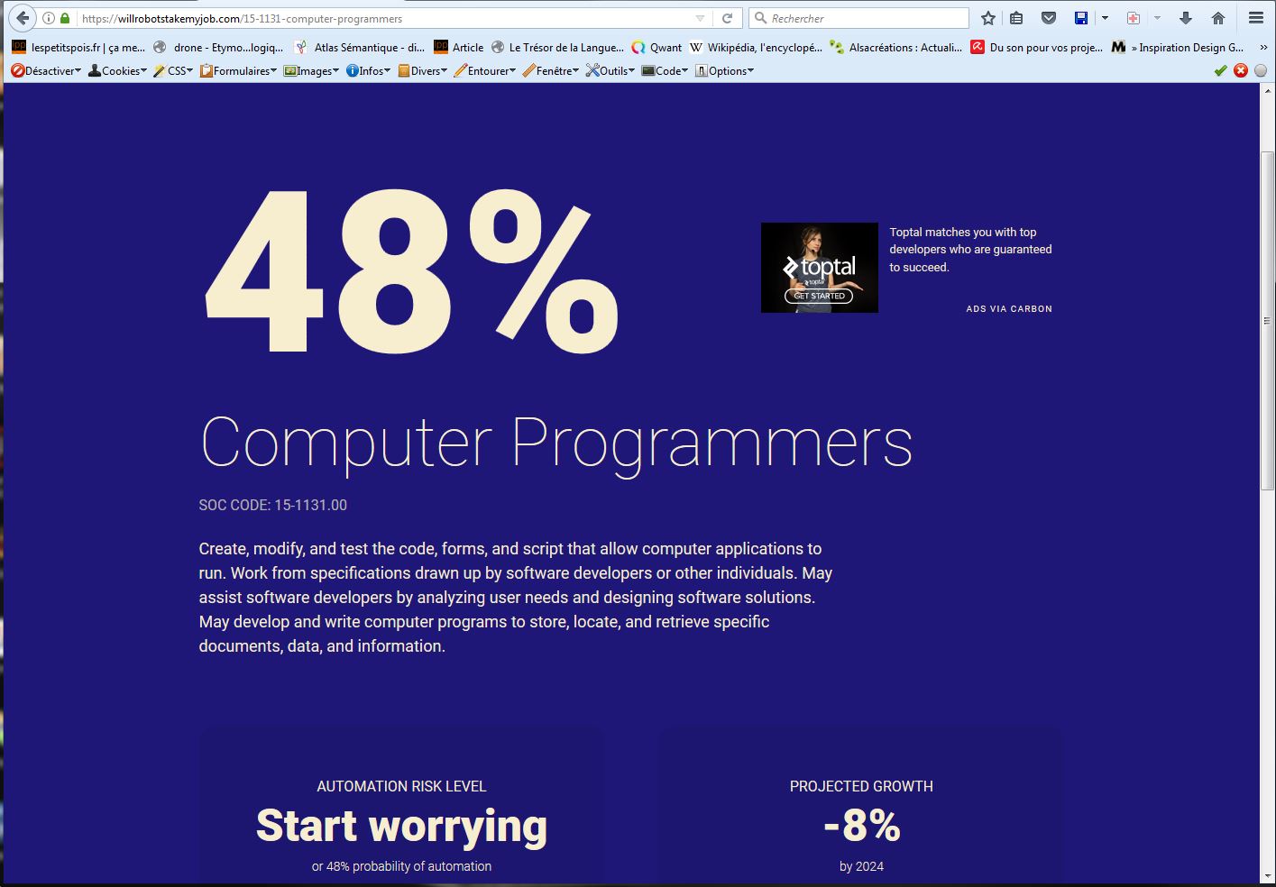 Drôle de découverte: un site qui te donne la probabilité que ton travail survive à la “digitalisation” : https://willrobotstakemyjob.com