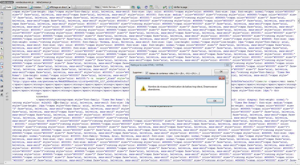 Le résultat donne un tableau affublé d'une scrollbar horizontale*: