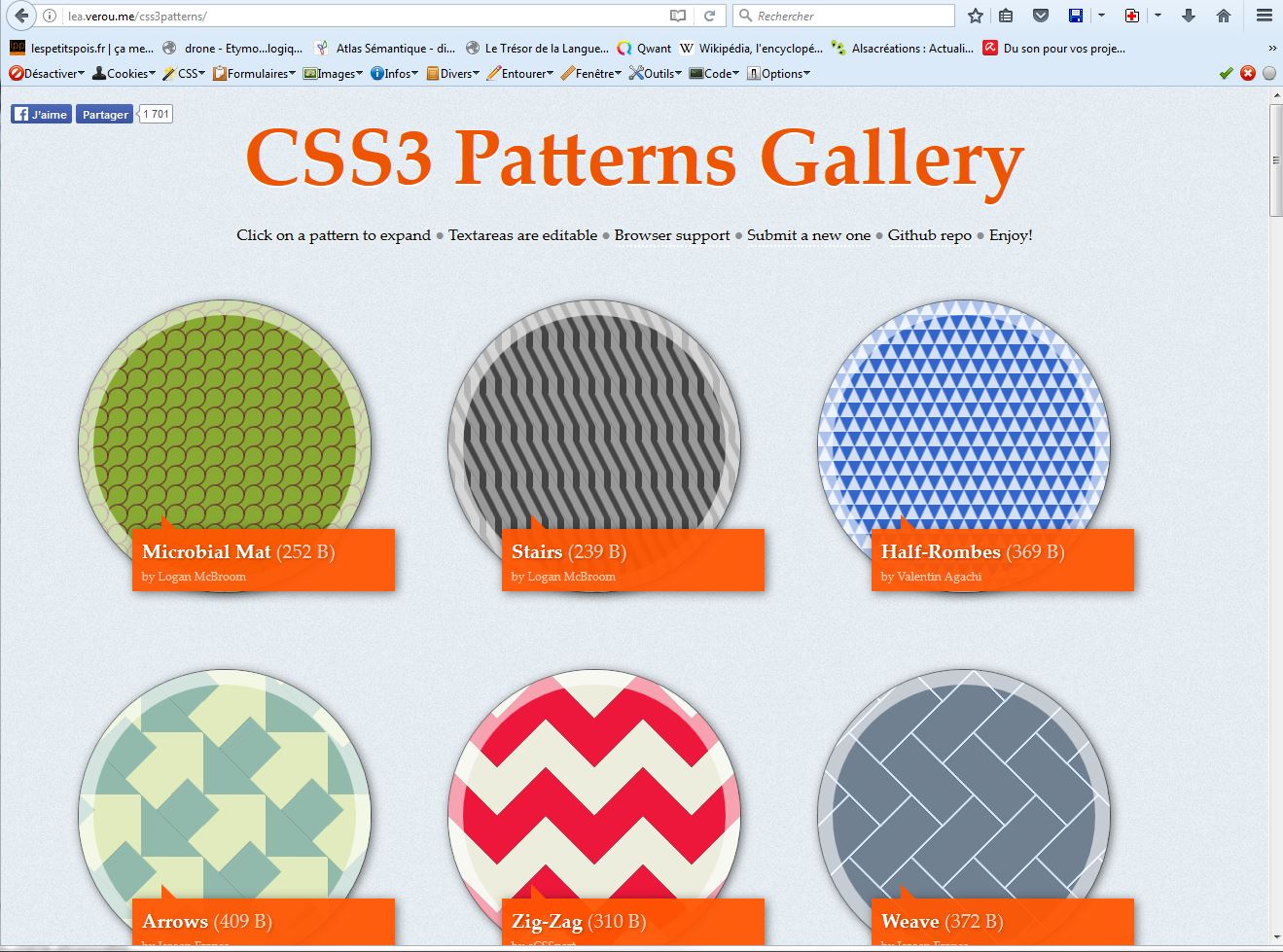 Une galerie de motifs/imprimés en CSS3 prédéfinis: