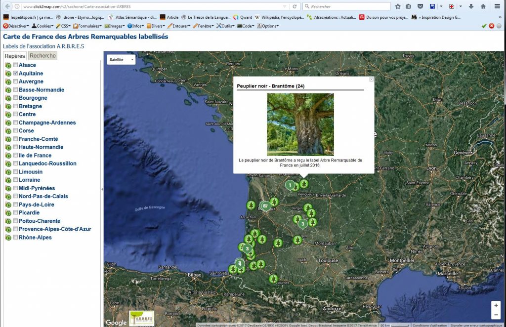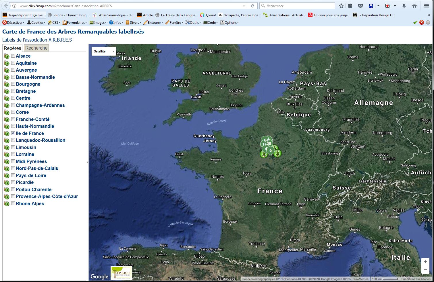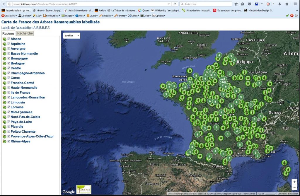 La carte est maintenue par l’association l’A.R.B.R.E.S, une association d’amoureux d’arbres remarquables: