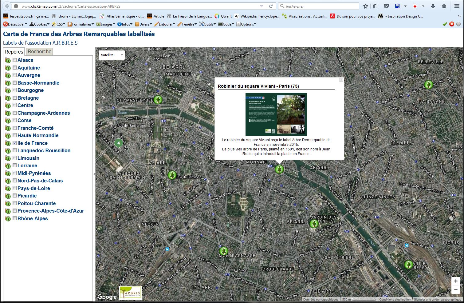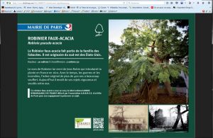 Un exemple avec les arbres d’Ile de France; intéressant ici parce que nous avons en plus de la localisation, un texte de la mairie de Paris :