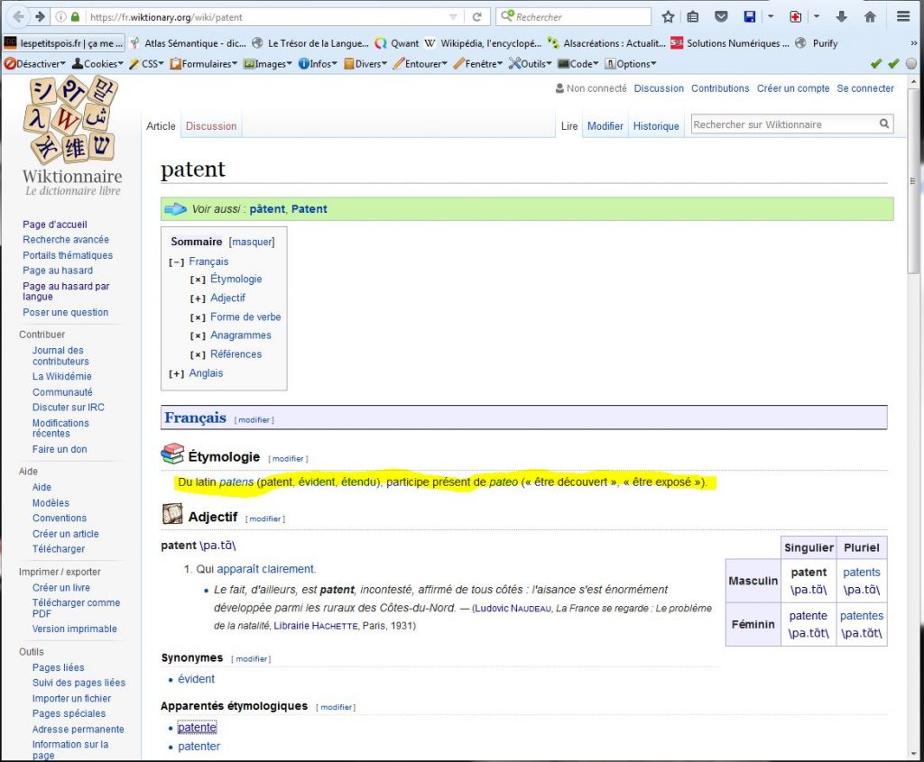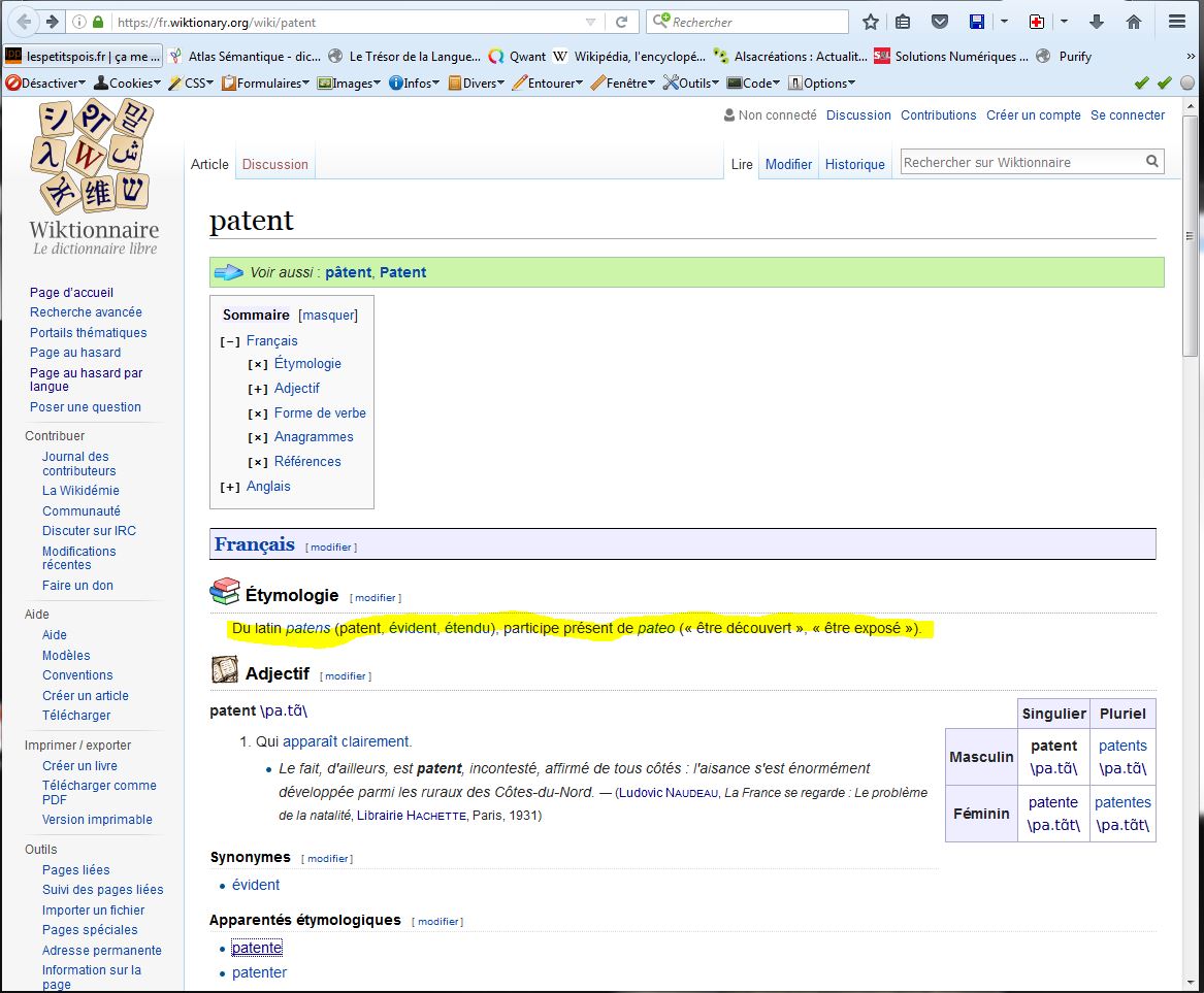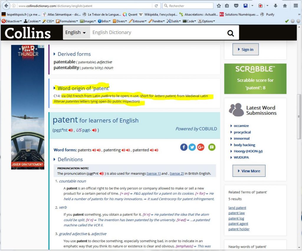 Et bien figurez-vous que ce mot patent, vient du français “patente” désignant les “lettres patentes” de l’Ancien Régime, c’est-à-dire les textes par lesquels le roi rendait public et opposable à tous un droit, un état, un statut ou un privilège.