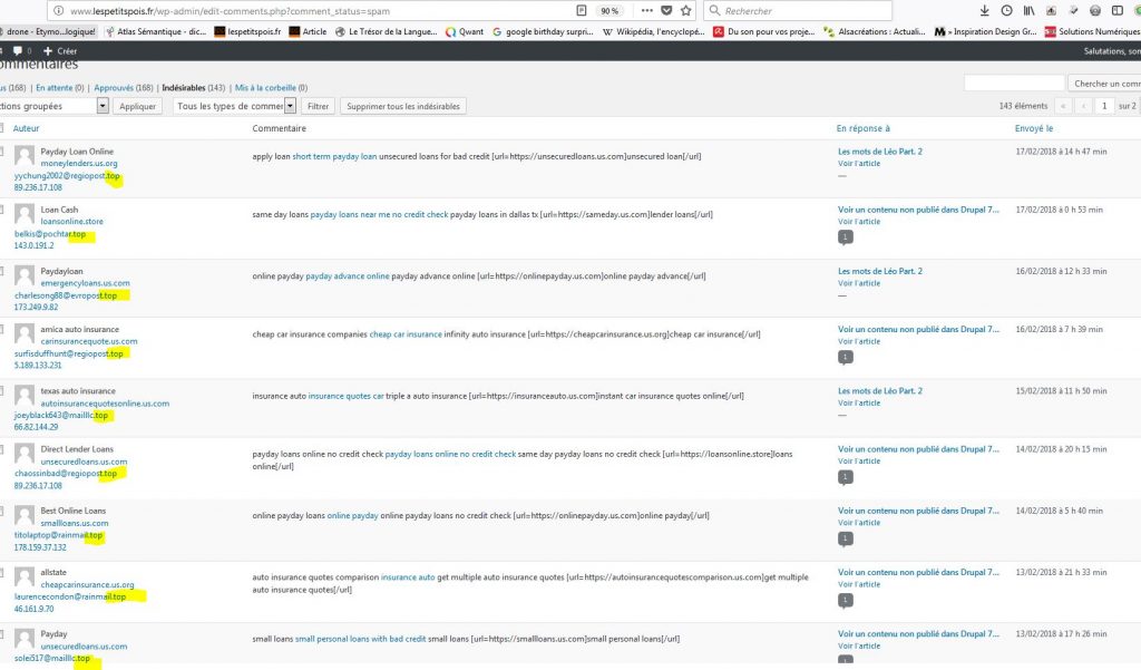 Lpp constate qu’il y a ce moment une recrudescence de commentaires SPAM.