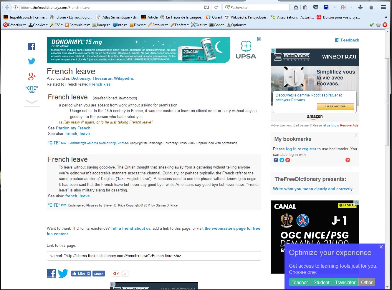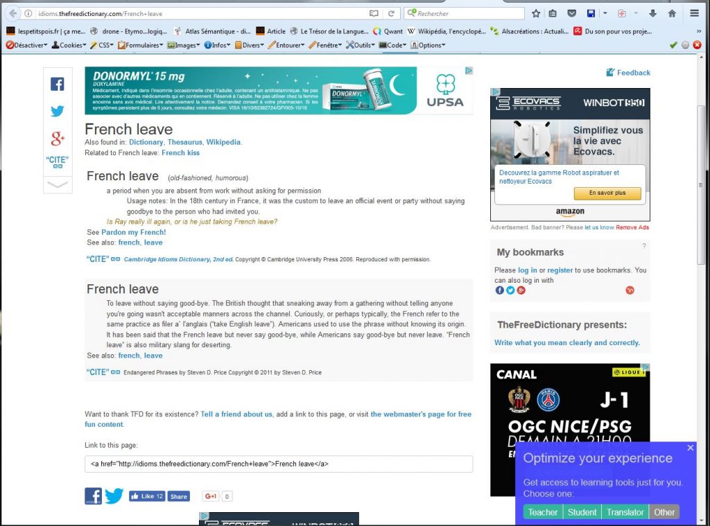En français, tu “files à l’anglaise” et en anglais tu “prends congé à la française” (to take french leave) !