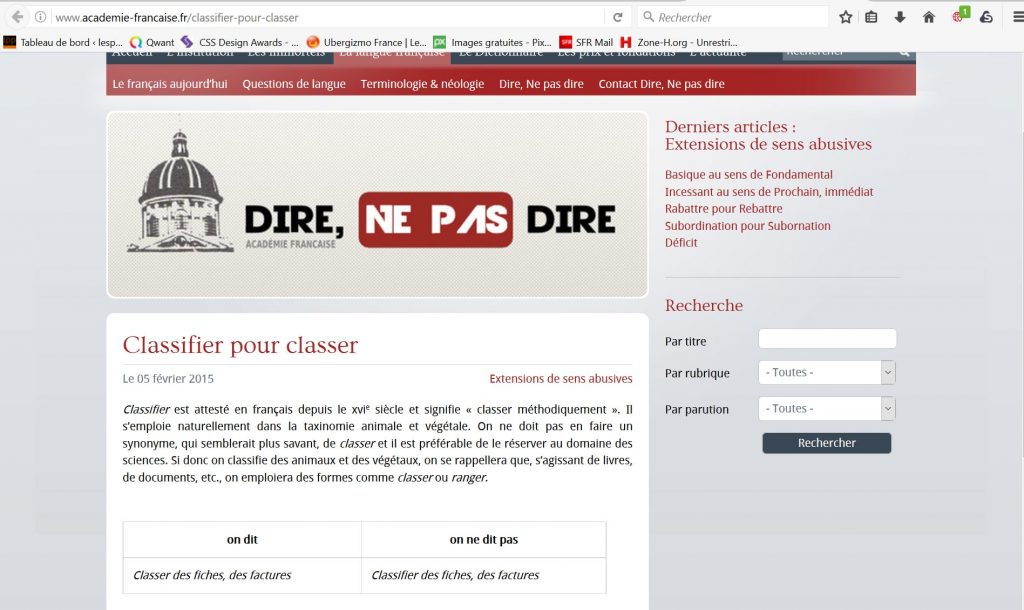 Selon l’Office Québécois de la langue Française, classifier c’est :