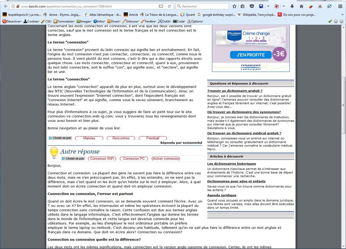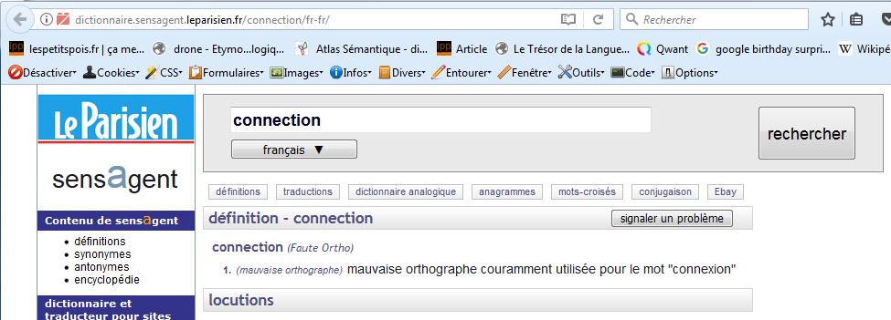 Aujourd’hui, j’ai encore écrit (en français) connection au lieu de connexion…