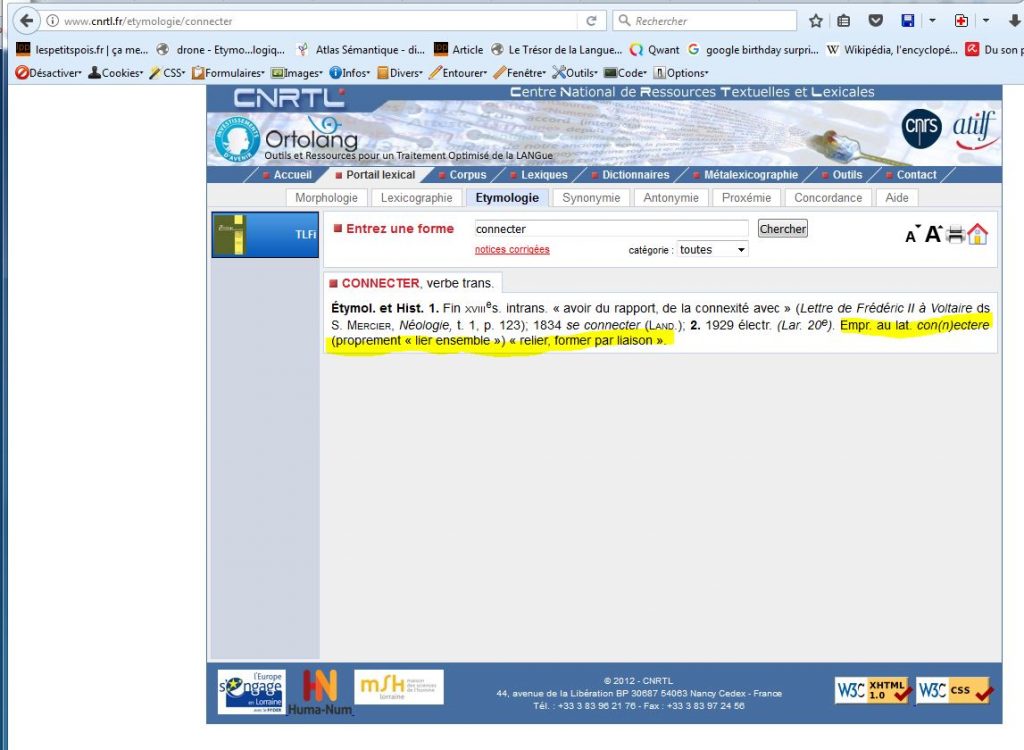 Le terme “connexion” provient du latin connexio qui signifie lien et enchaînement. En fait, l’origine du mot connexion n’est pas connecter, connecteur, ou connectif, comme nous le pensons tous. Il vient plutôt du mot connexe, c’est-à-dire qui a des rapports étroits avec quelque chose. Les mots connecter, connecteur et connectif, quant à eux, proviennent du mot latin connectere, soit le suffixe “con”, qui signifie avec, et “nectere”, qui signifie lier et unir.