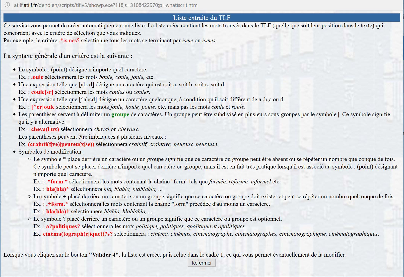 Ces fonctionnalités, si on les connait peu, c’est qu’elles sont, non pas cachées, mais écrites par des informaticiens. J’entends par là que , sans aller jusqu’au design, l’ergonomie n’est pas le point fort du tlfi…