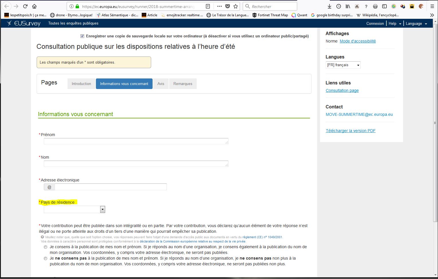 Si vous avez un avis sur la question, le formulaire à remplir est disponible à cette adresse: https://ec.europa.eu/eusurvey/runner/2018-summertime-arrangements?surveylanguage=FR.