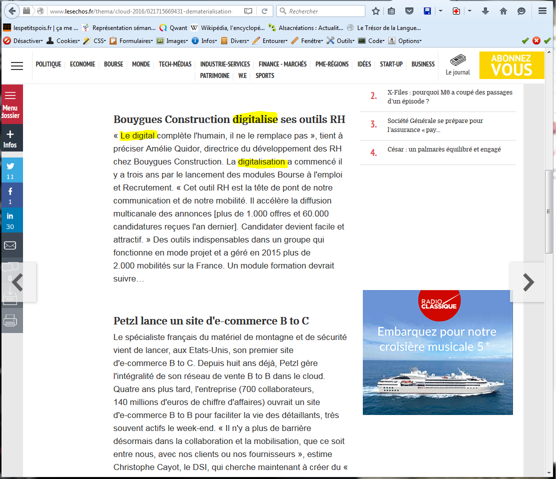 Mais pourquoi ne pas dire numérisation alors ? ou dématérialisation, vu que c’était le titre de mon article “témoin” ?