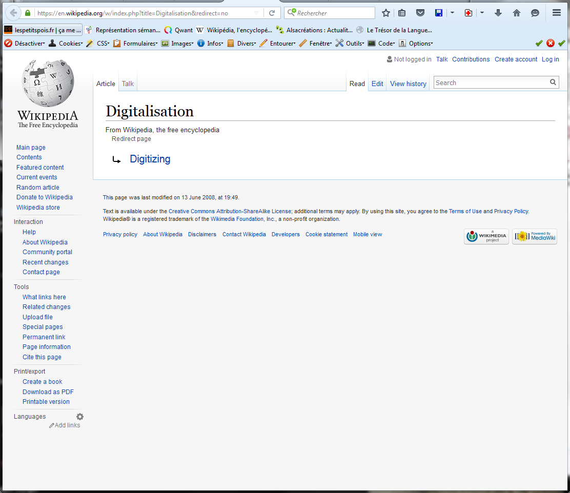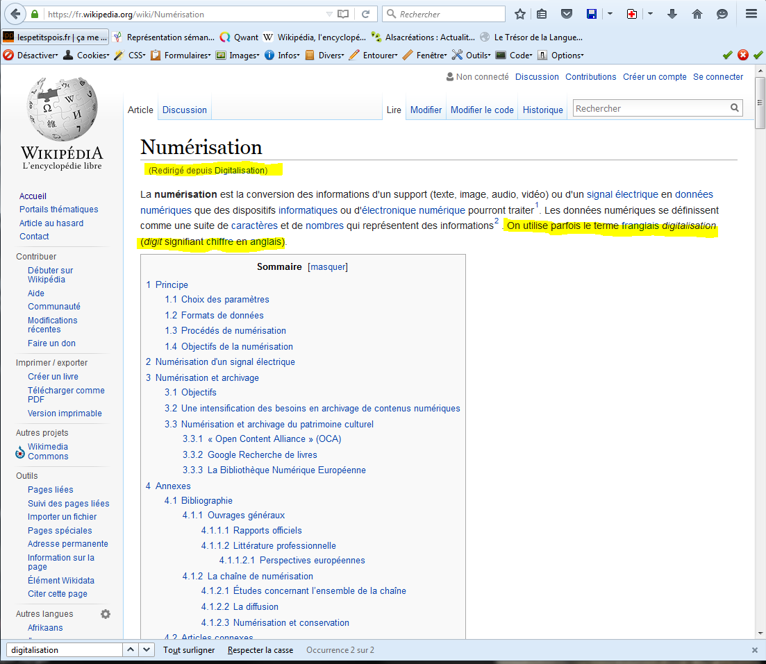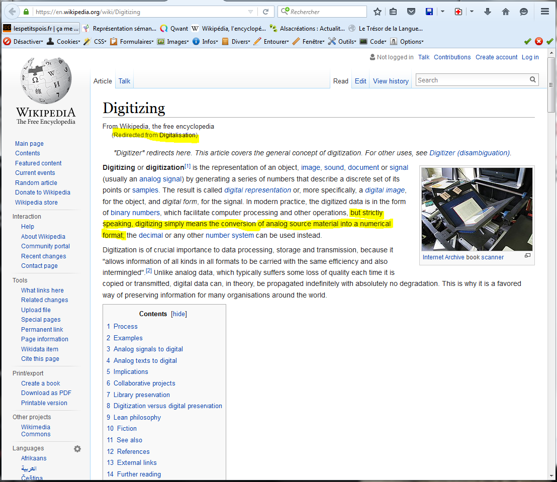 Dans le Wikipédia, on est (automatiquement) redirigé vers “numérisation”: