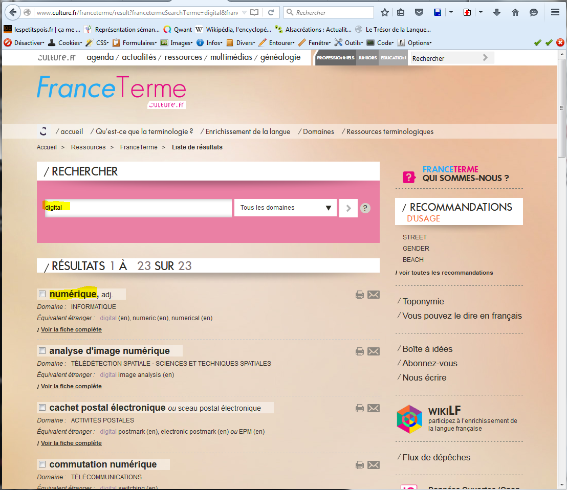 Et chez France terme, et donc pour l’anglais, on lui donne également l’équivalent de “numérique”.