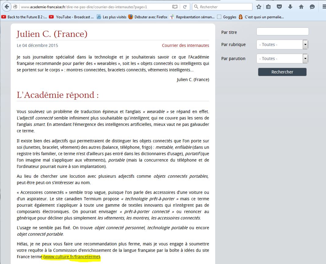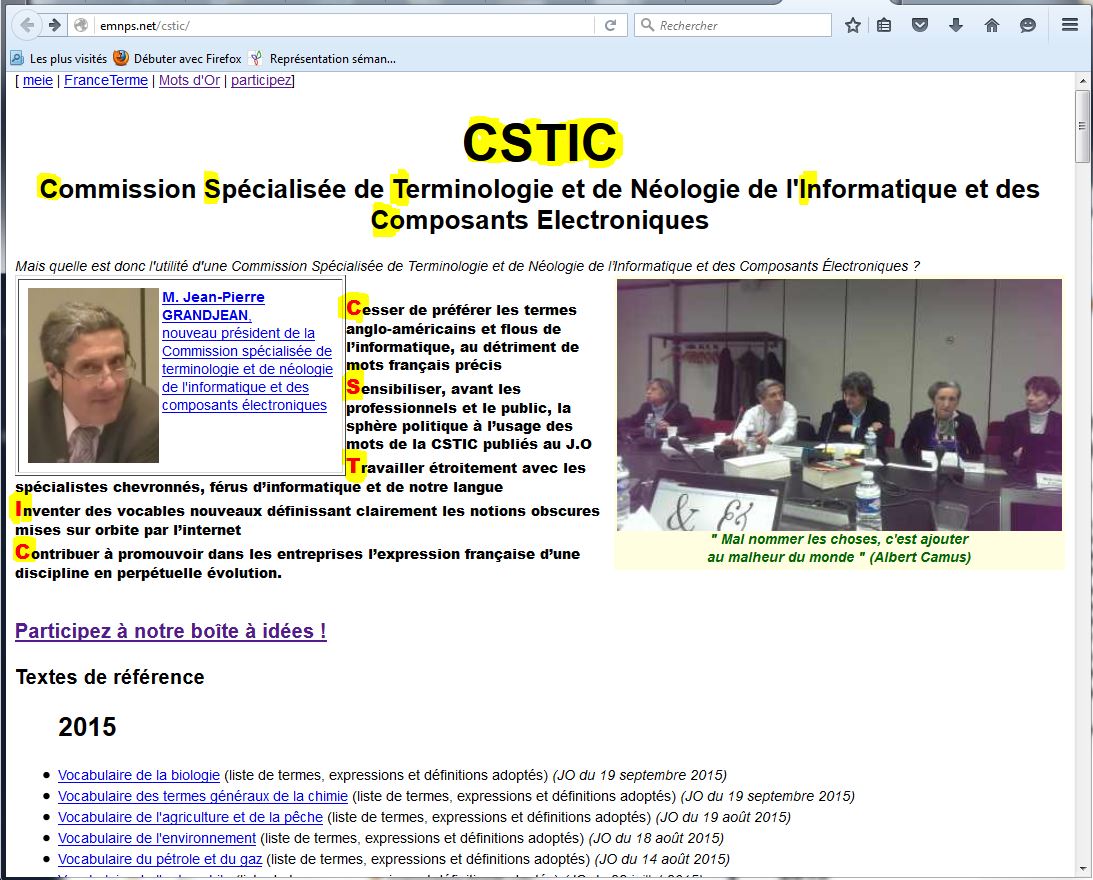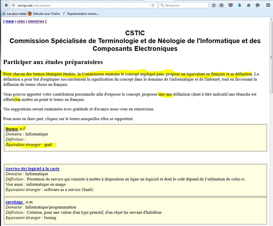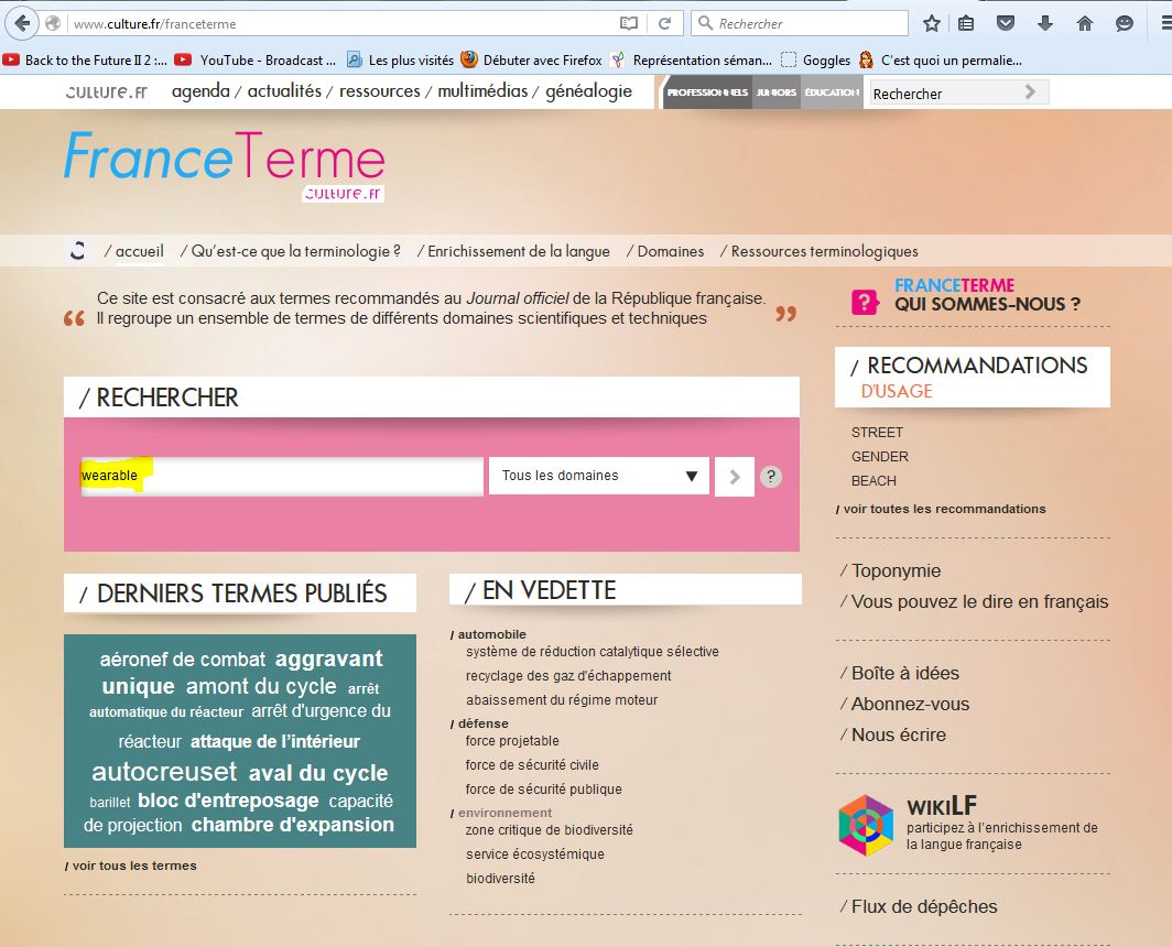 Et je clique sur la plus appropriée en apparence pour répondre à ma question (i.e.* traduire wearable en français): Commission spécialisée de terminologie et de néologie de l’informatique