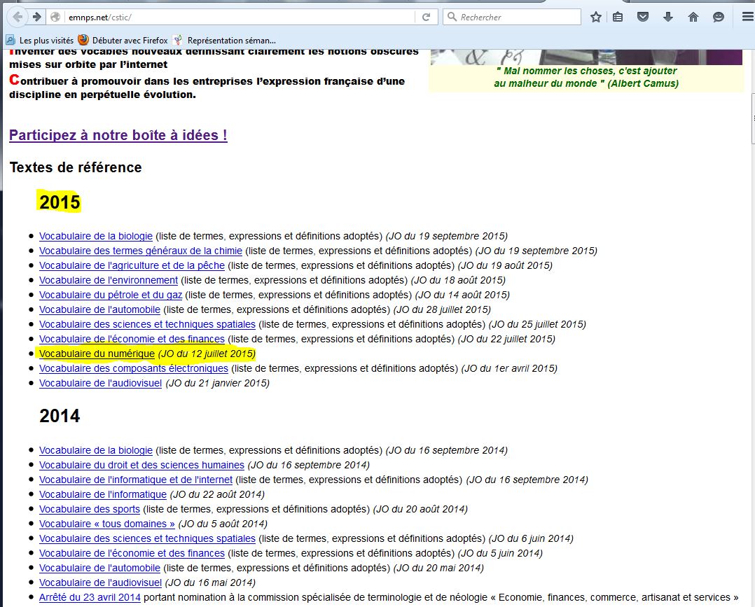 Mais c’est bien la seule page à jour… beaucoup de liens mènent vers des sites qui n’existent plus… une vraie catastrophe (je vous laisse vous y promener, je ne vais pas faire de copie d’écran de toutes les horreurs que j’ai vues).
