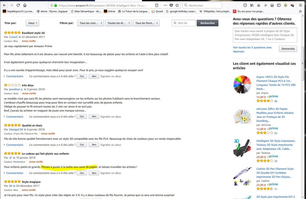 Et que dans les commentaires on te parle de ramette de papier et de crayons de couleurs et de fil PLA…