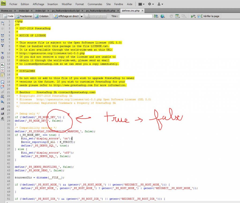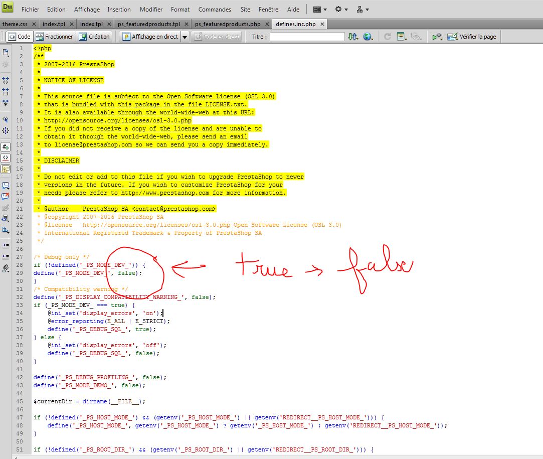 Pour cela, aller dans le fichier config /defines.inc.php: