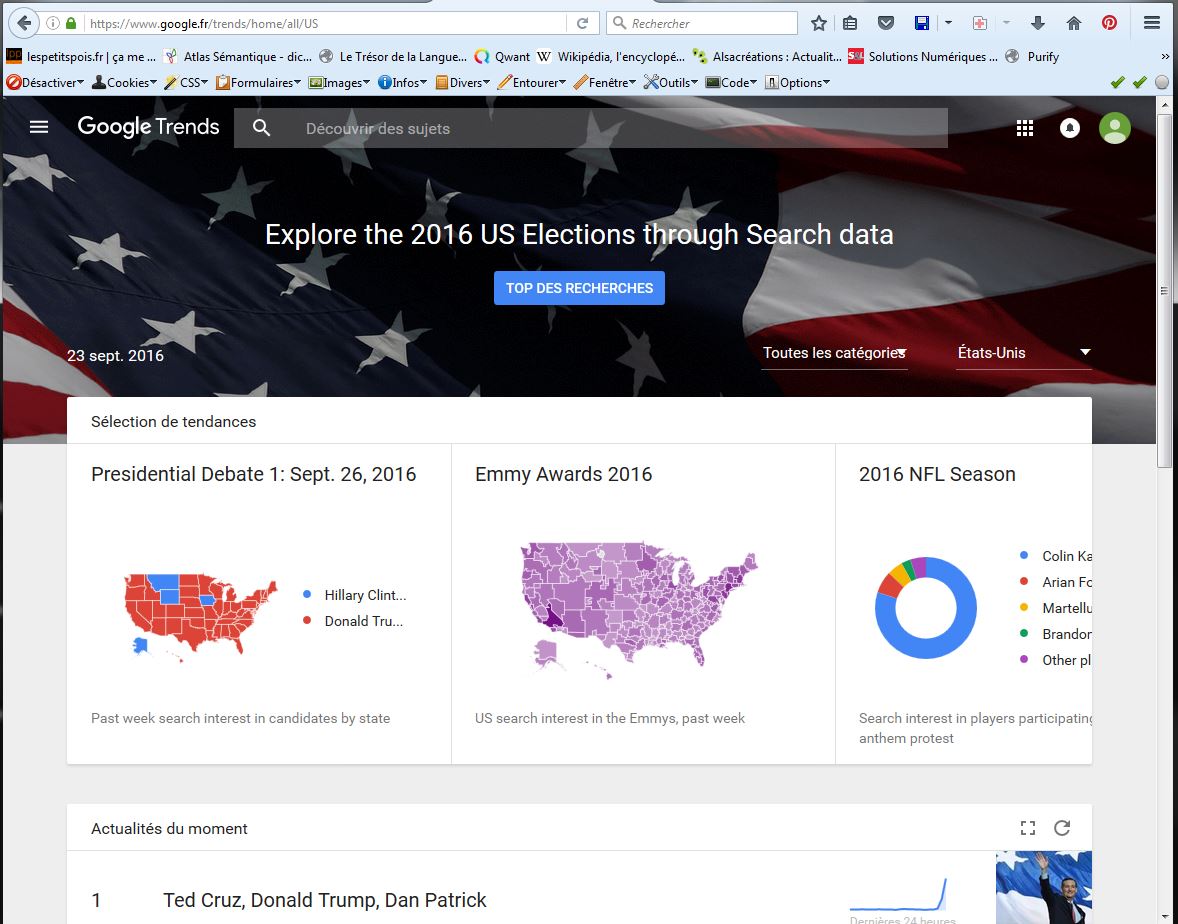 Je suis particulièrement fan de Google Trends qui permet de voir l’actualité de manière graphique.