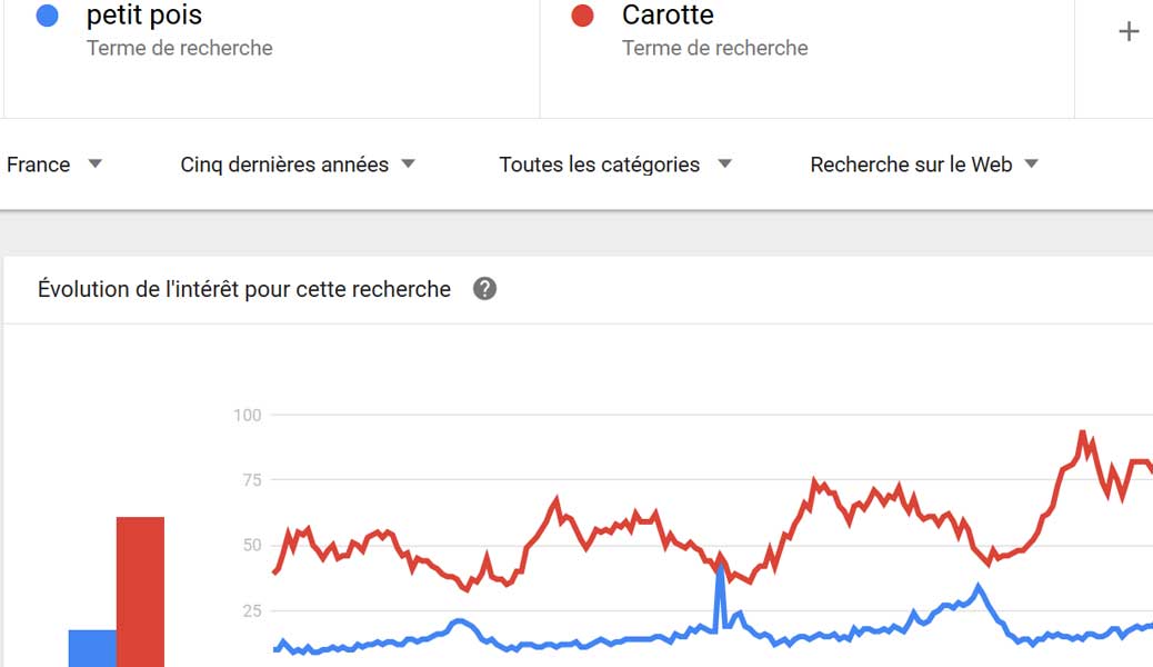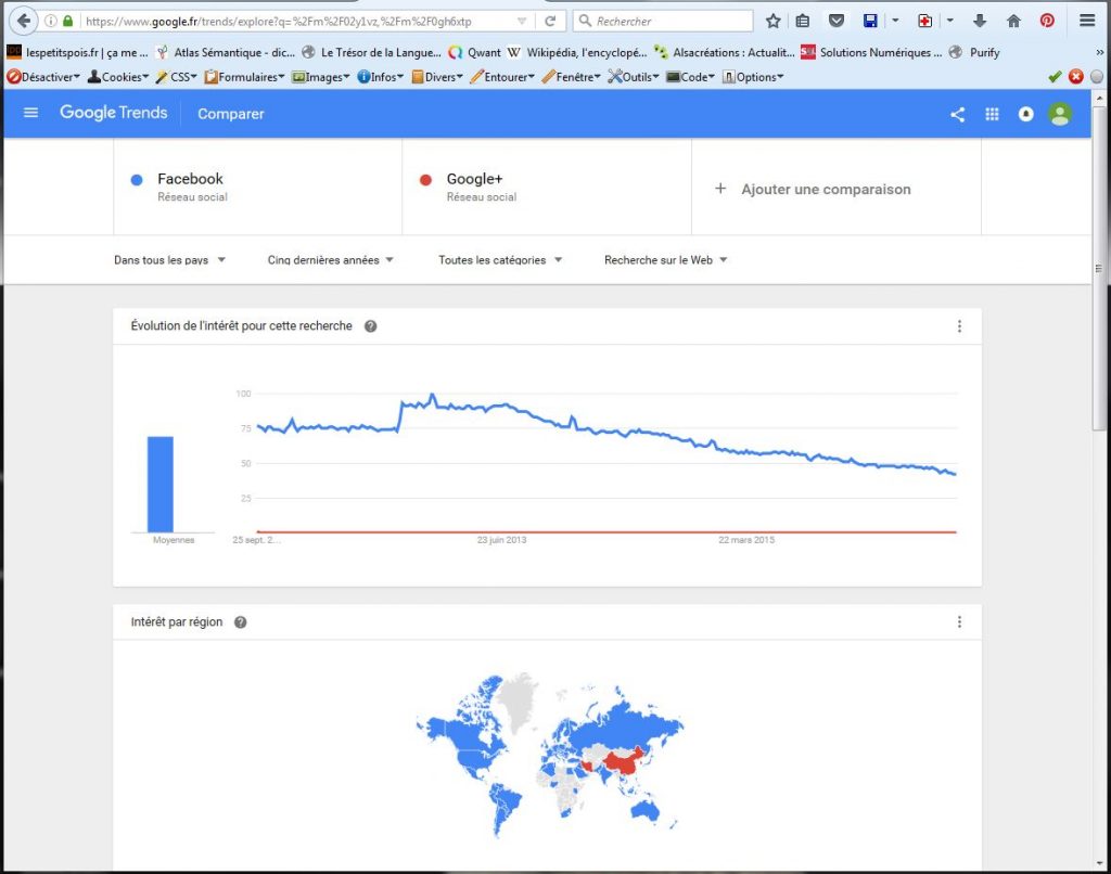 Évidemment, Google ne s’arrête pas là et propose de faire des comparaison de requête.On peut comparer 2 requêtes: ici Facebook vs Google +