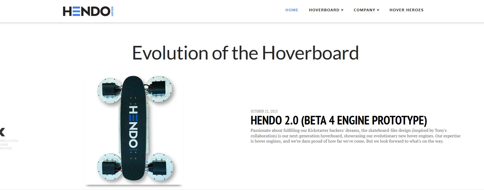 - Plusieurs prototypes de Hendohover fabriqués par la société Hendo dont le premier fonctionnel date du mois de mai 2013 (Jolie timeline sur le site de Hendo en passant) . Réalisation possible grâce au crowdfunding.