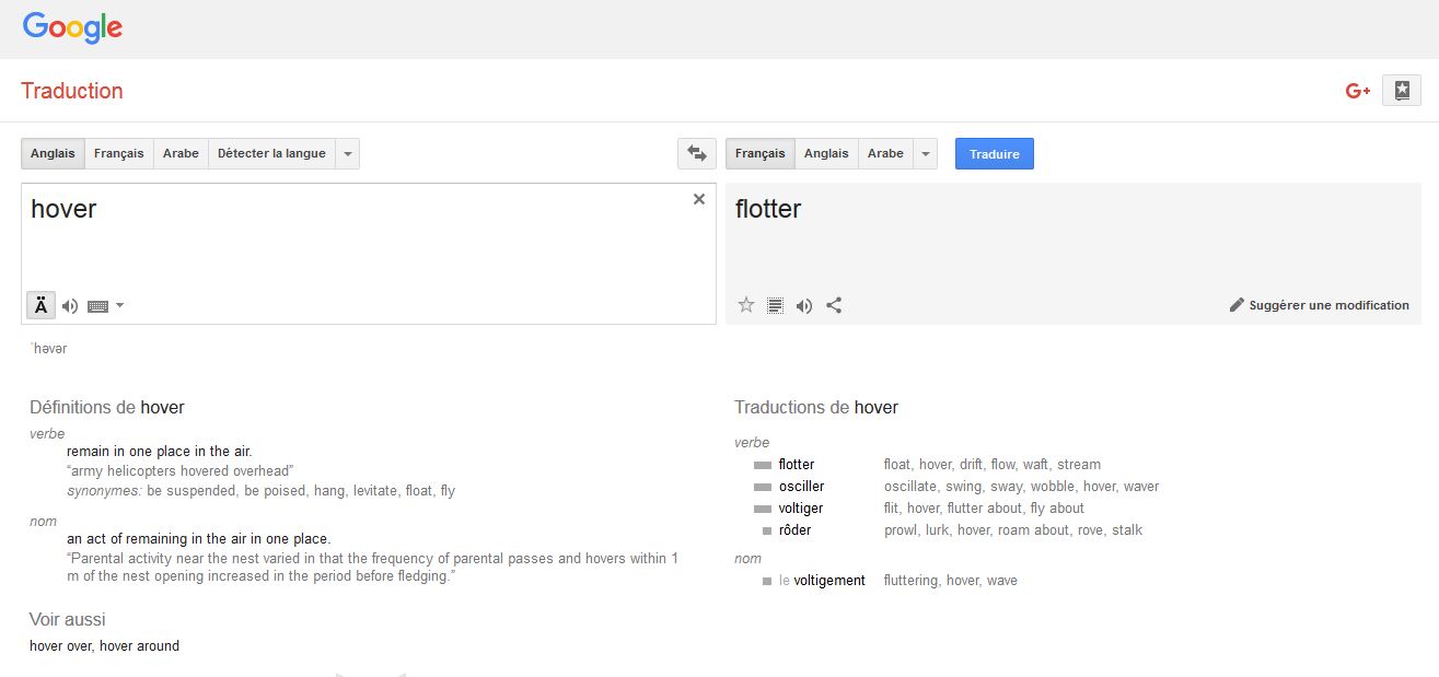 D’ailleurs, en prenant la traduction de “hover”dans l’atlas sémantique nous obtenons: “graviter”, “planer”, “voler sur place”