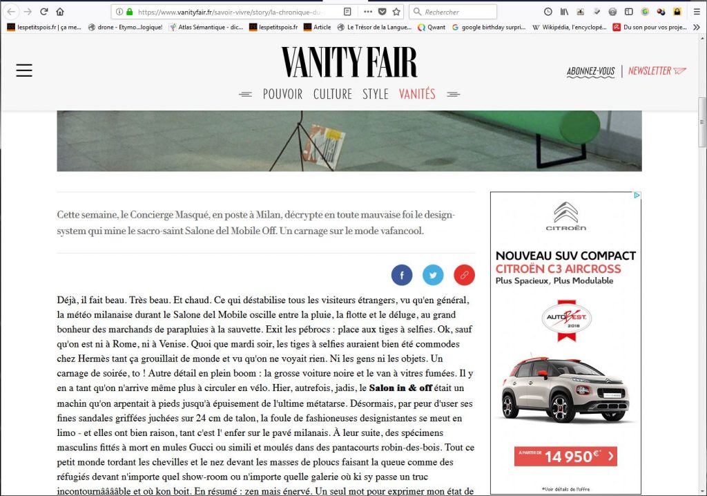 D’ailleurs sur le sujet, je recommande vivement la lecture d’un article hors du commun signé “le concierge masqué” sur Vanity Fair…