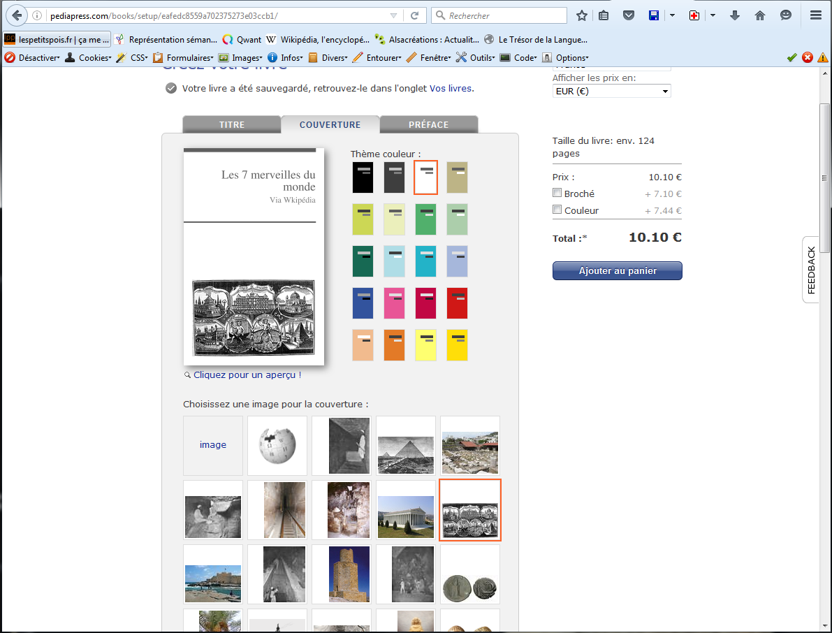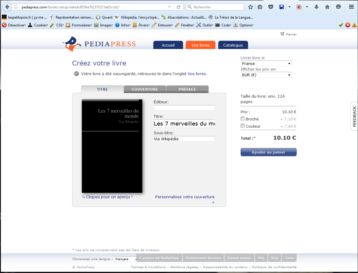 Comme on peut le voir sur le screenshot précédent, j’ai pu “personnaliser” la couverture de mon livre: