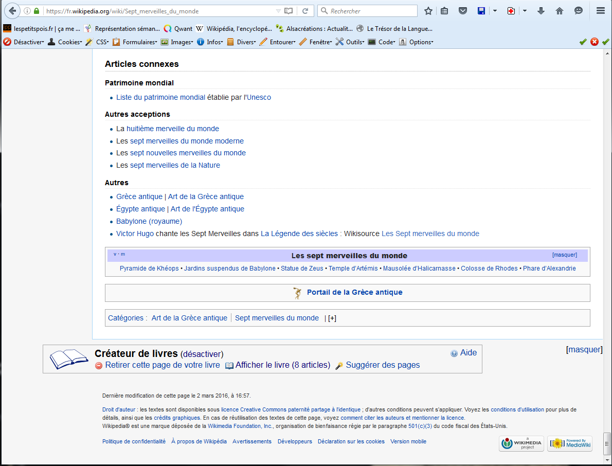 Bon ok j’ajoute mon article ainsi que des articles lié au sujet (7 comme les 7 merveilles du monde…).