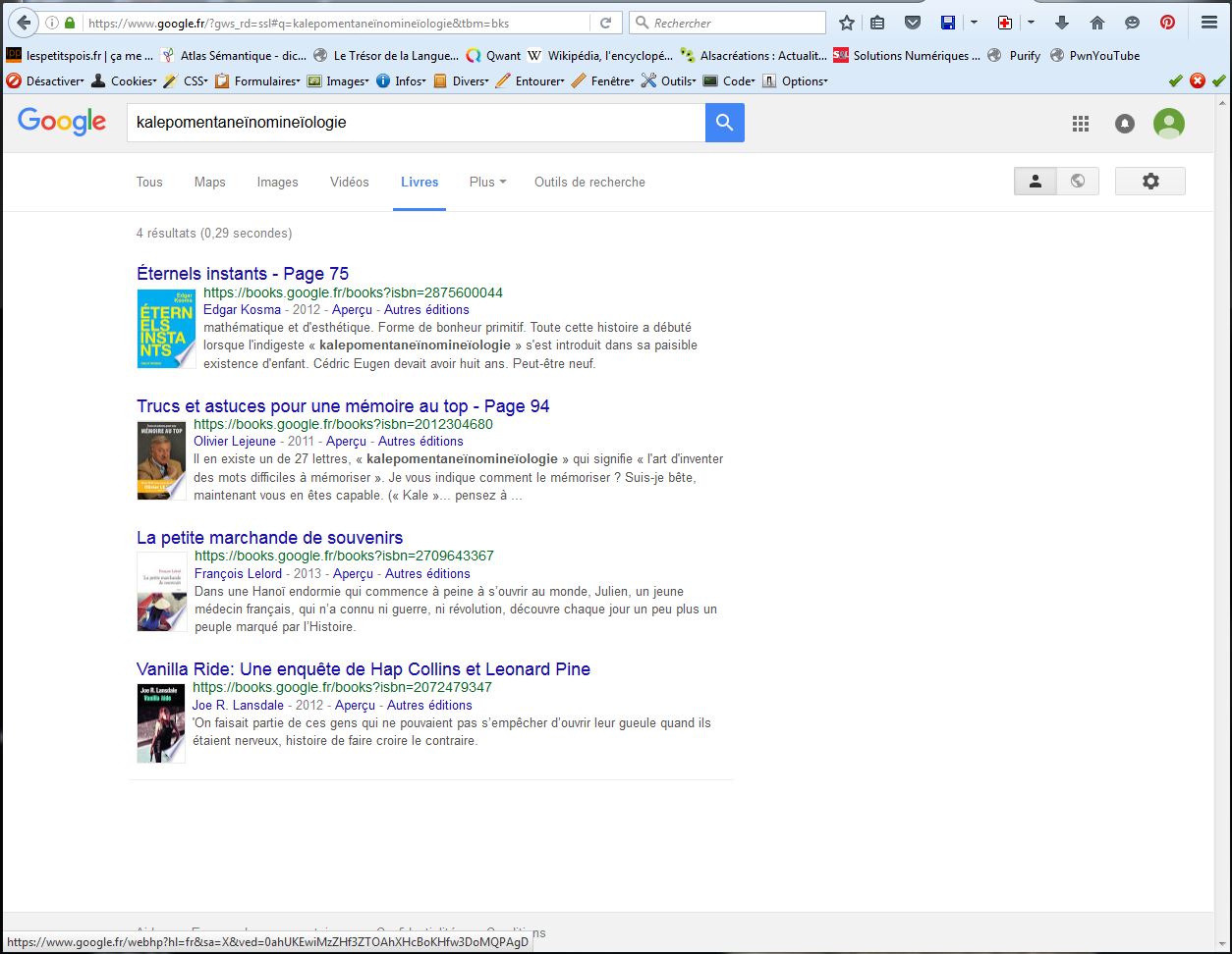 Et dans la banque de livre de Google, les résultats sont extrêmement peu nombreux:
