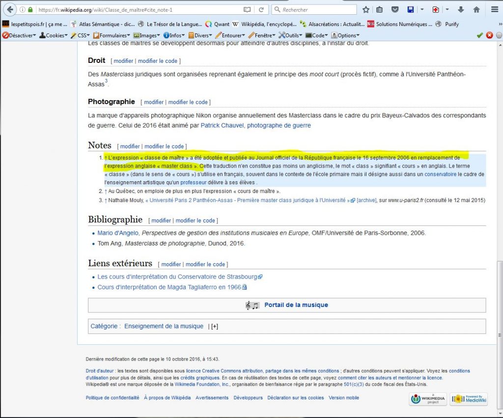 Cependant 1160 résultats contre 208 000, ça fait quand même pas bézef. Et une chose est sûre c’est qu’il y a bien des pages en français utilisant les mots en anglais: pour preuve les 5 1ers résultats de la requête “master class”, ci-dessus en image.